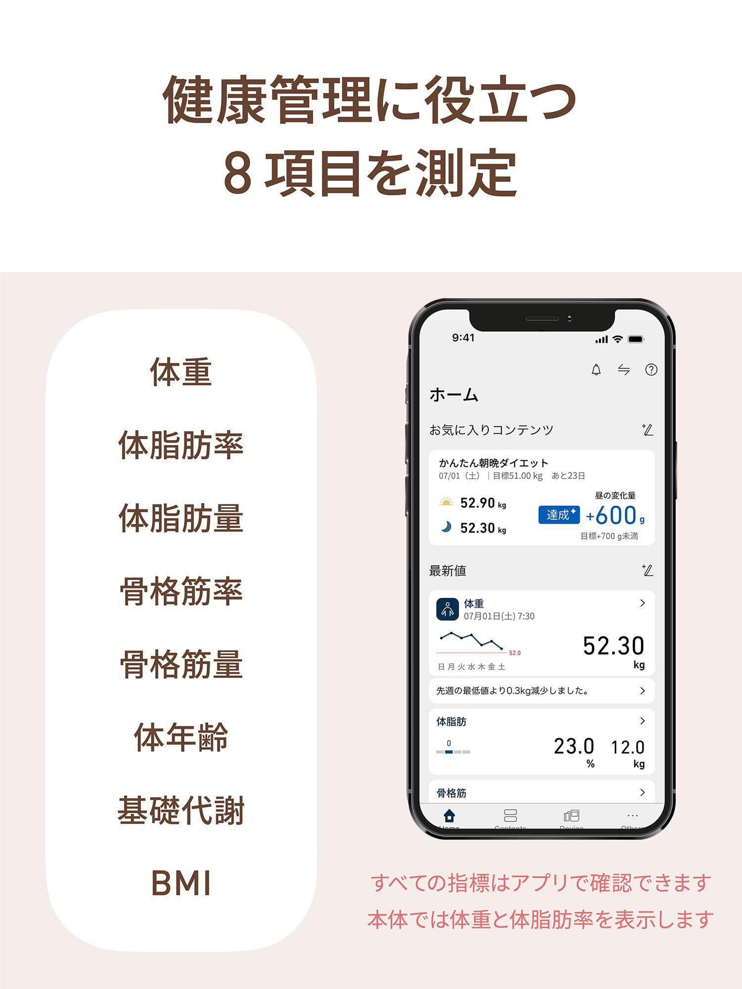 暮らしに溶け込むニュアンスカラーのコンパクトな通信体組成計