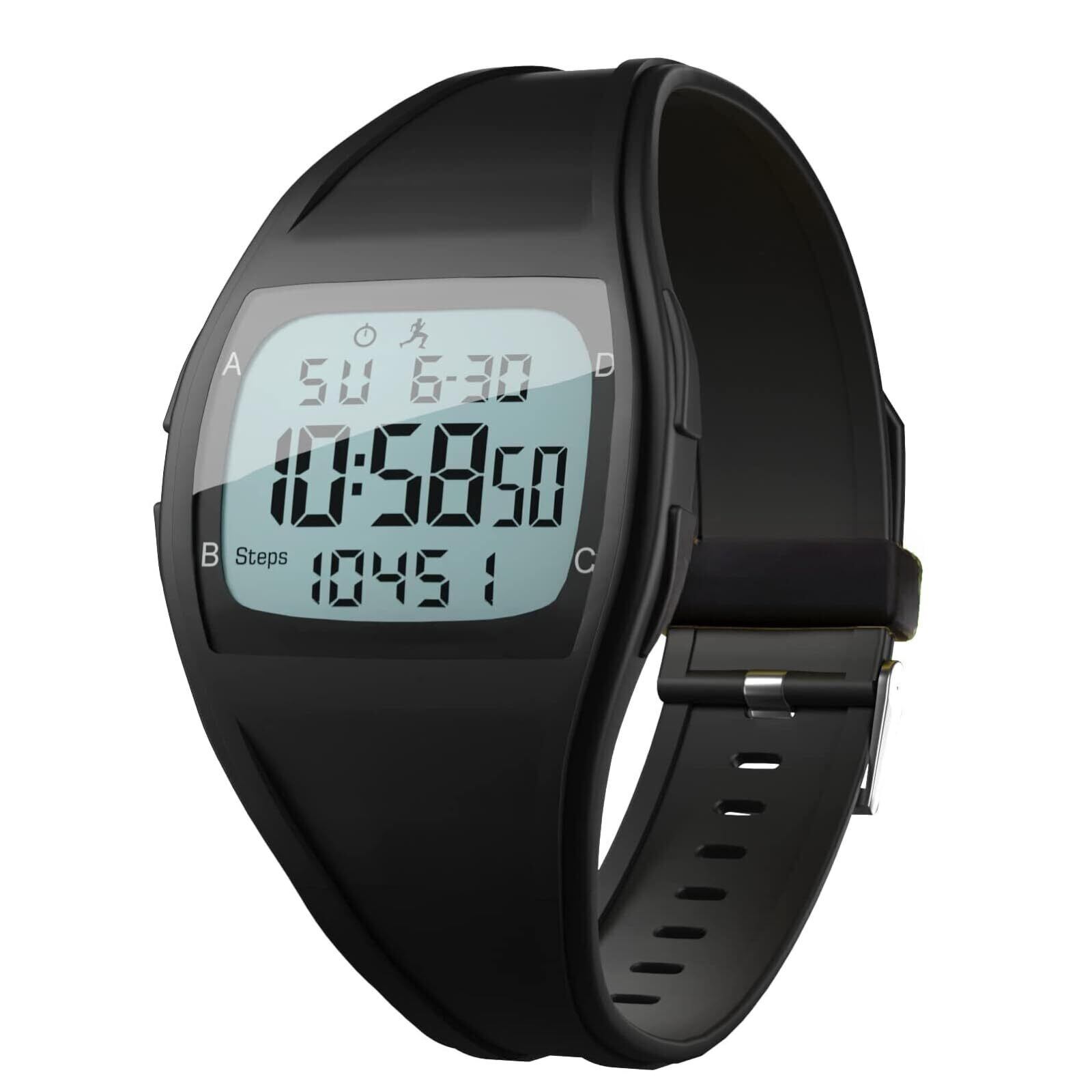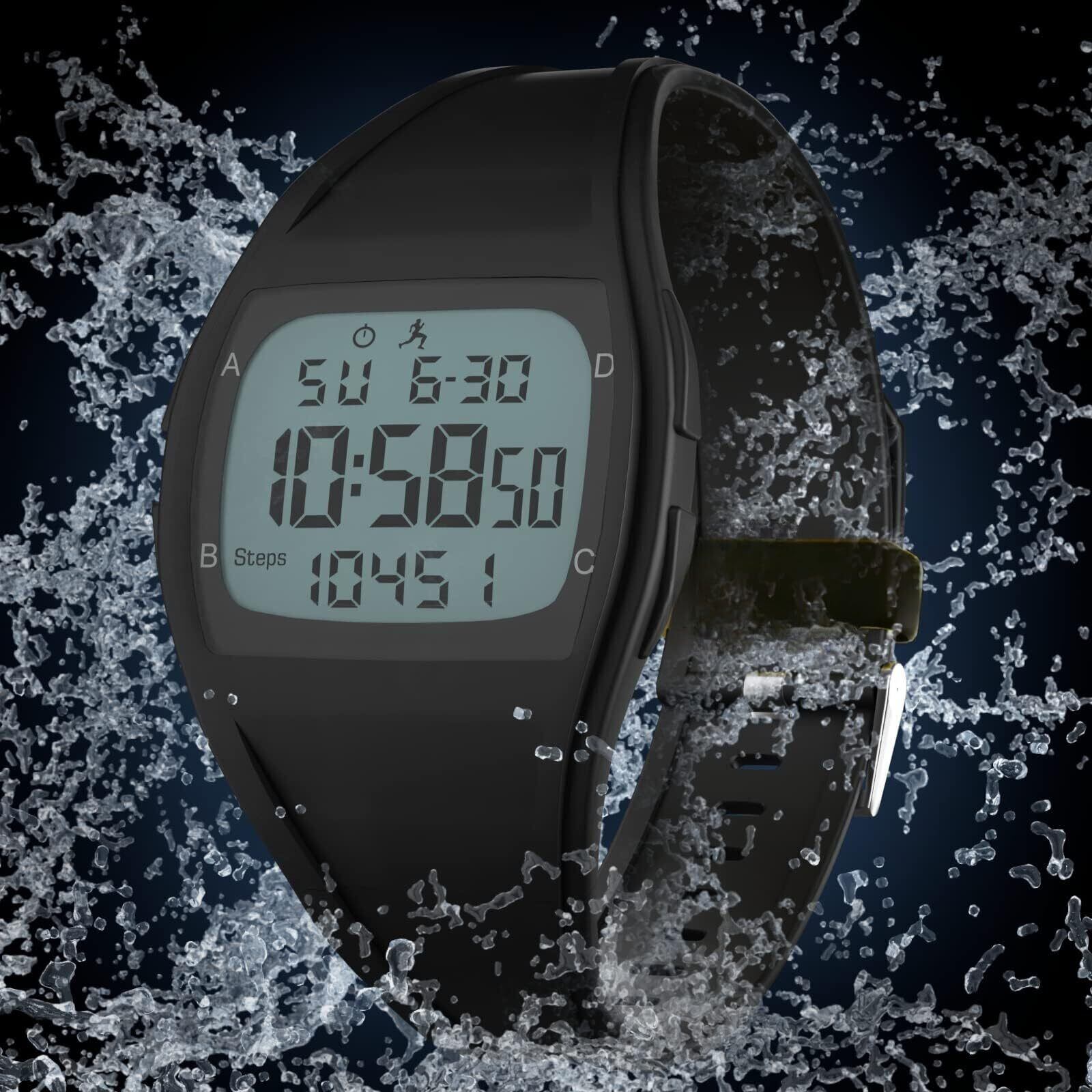 Amain 歩数計付き ウォーキングウオッチ AWW-2506 振動アラーム 目覚まし時計 防水機能 ストップウオッチ付き (オールブラック)