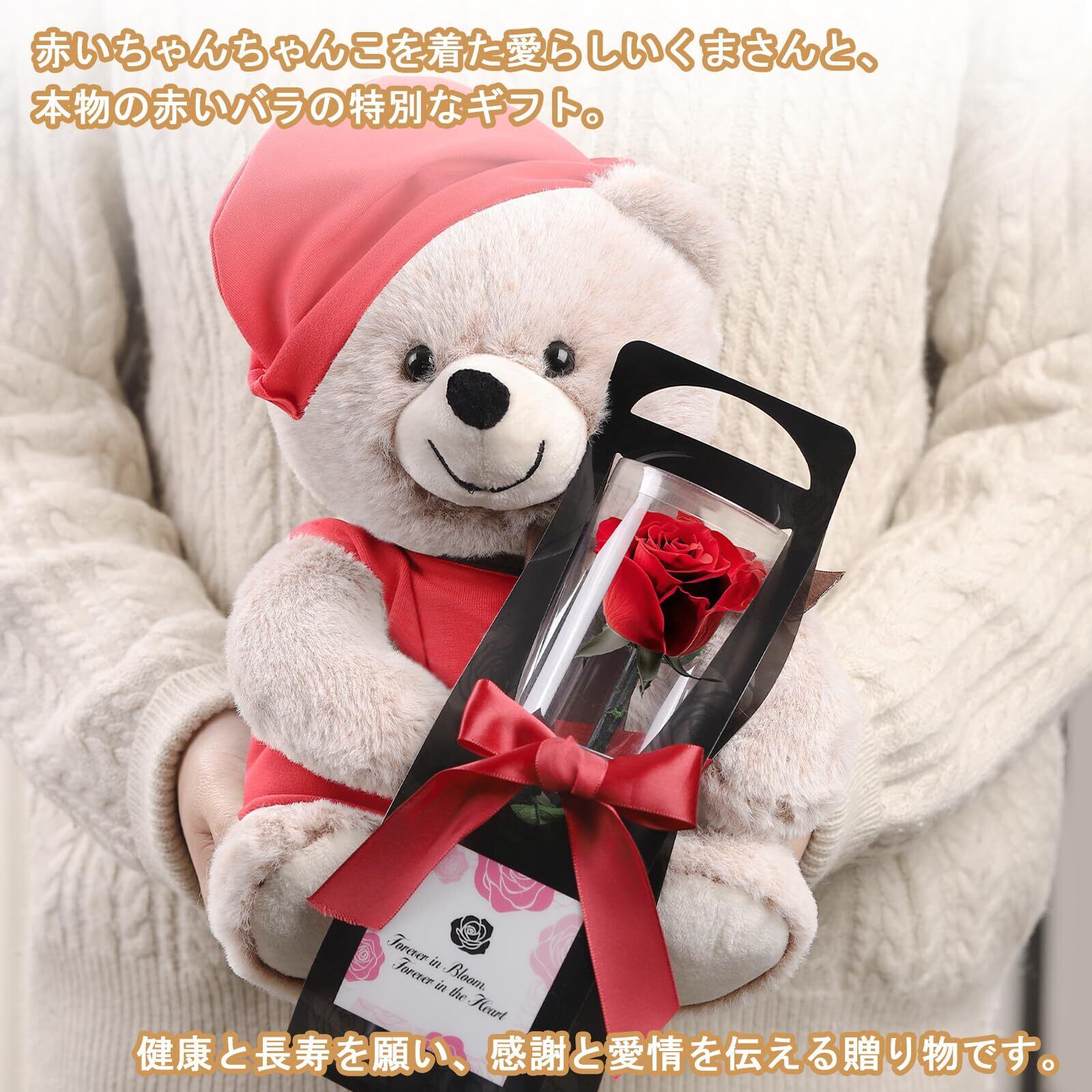 【新着商品】還暦祝い 女性 プレゼント ぬいぐるみとプリザーブドフラワー ギフトセット 赤 一輪のバラ 60歳 花 誕生日祝い 女性 母親 友達 同僚 おばあちゃん 祖母 長寿祝い クリアケース入り メッセージカード付き