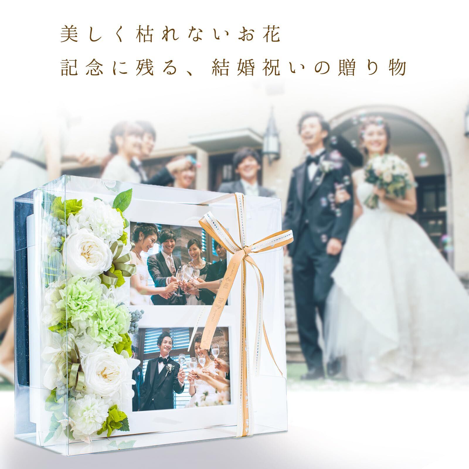プリザーブドフラワー 写真立て 結婚祝い 結婚式 両親贈呈品 結婚祝いに最適な高級ギフト ウェディング フォトフレーム プレゼント 白 ミルフィーユ・ホワイト