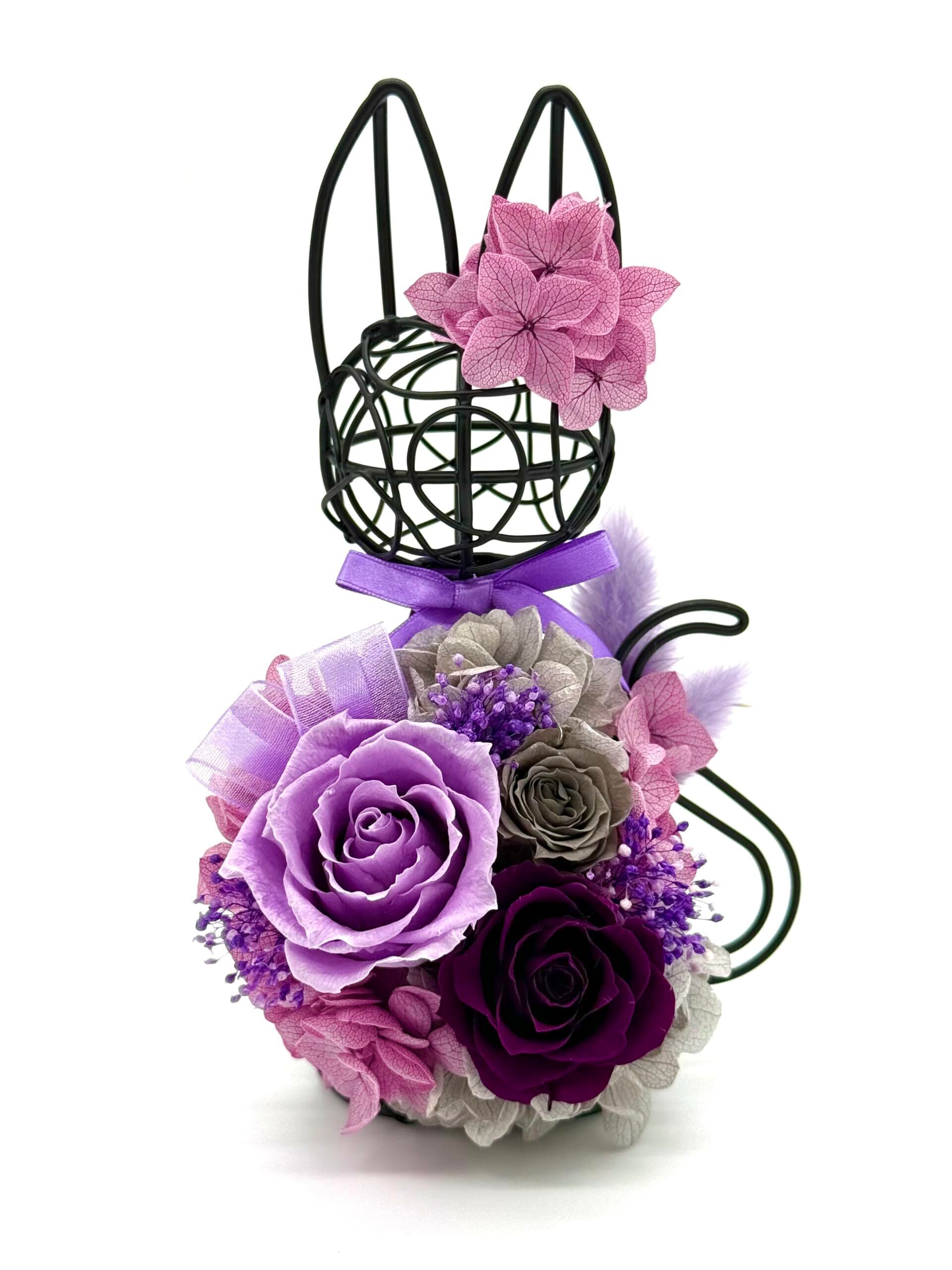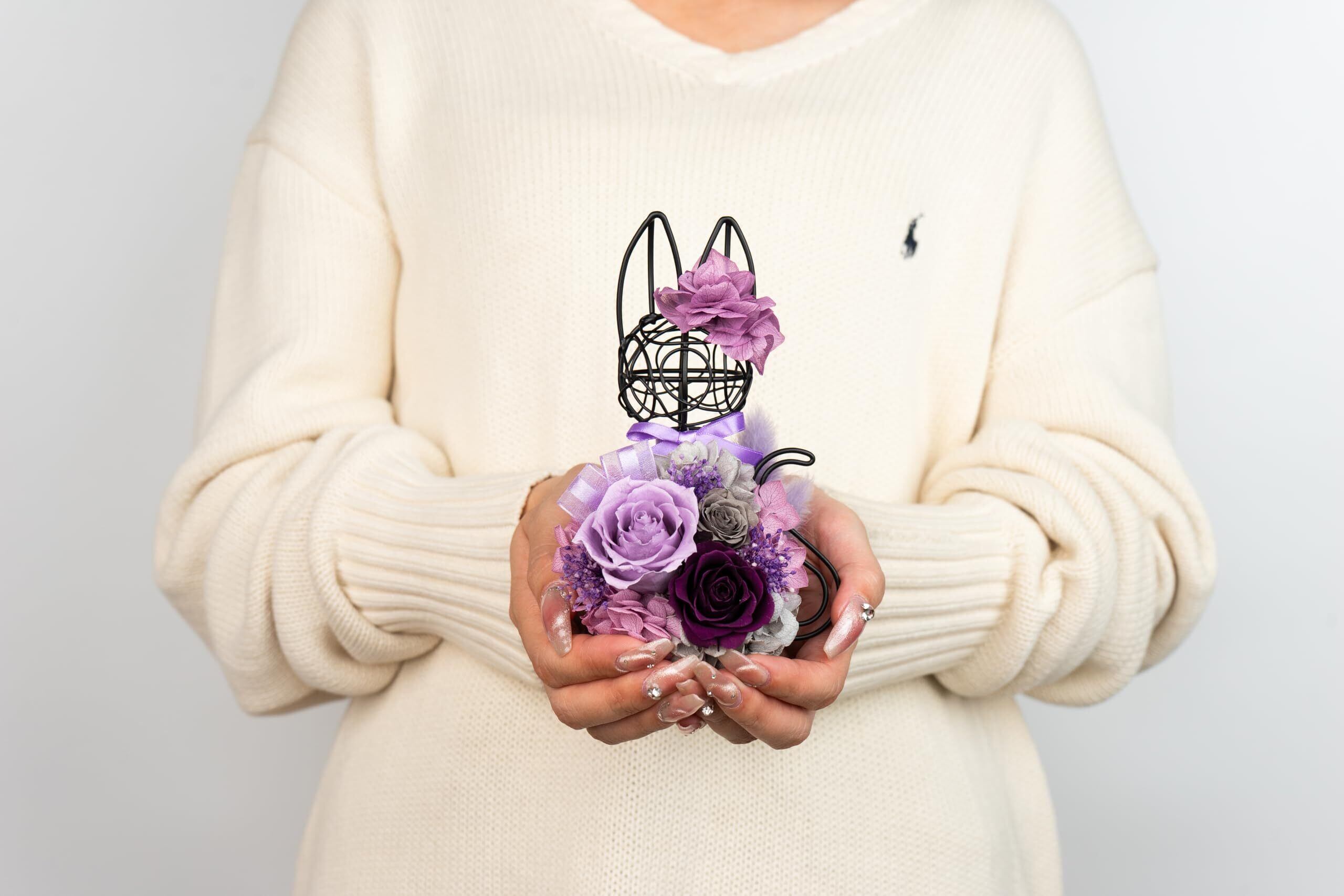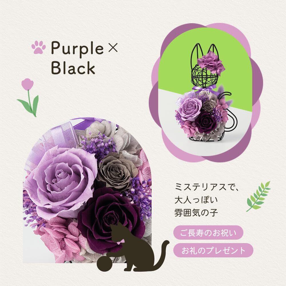 プリザーブドフラワー 白猫黒猫フラワーギフト プレゼント 日本製 猫 ワイヤー (パープル/ブラック)