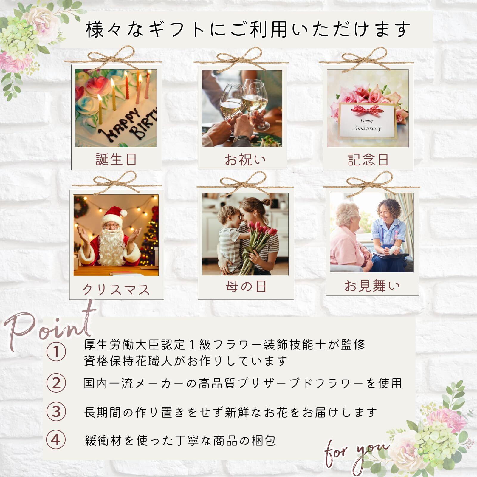 【商品の特徴】・四種類のかすみ草がたっぷり入ったこちらのハーバリウムは、シンプルなデザインでお部屋に馴染みやすくオシャレに飾っていただけます。・生花とは異なり、お世話いらずで長い期間飾ることができます。・オリジナルハーバリウム専用ボックス入りでギフトにおすすめです。