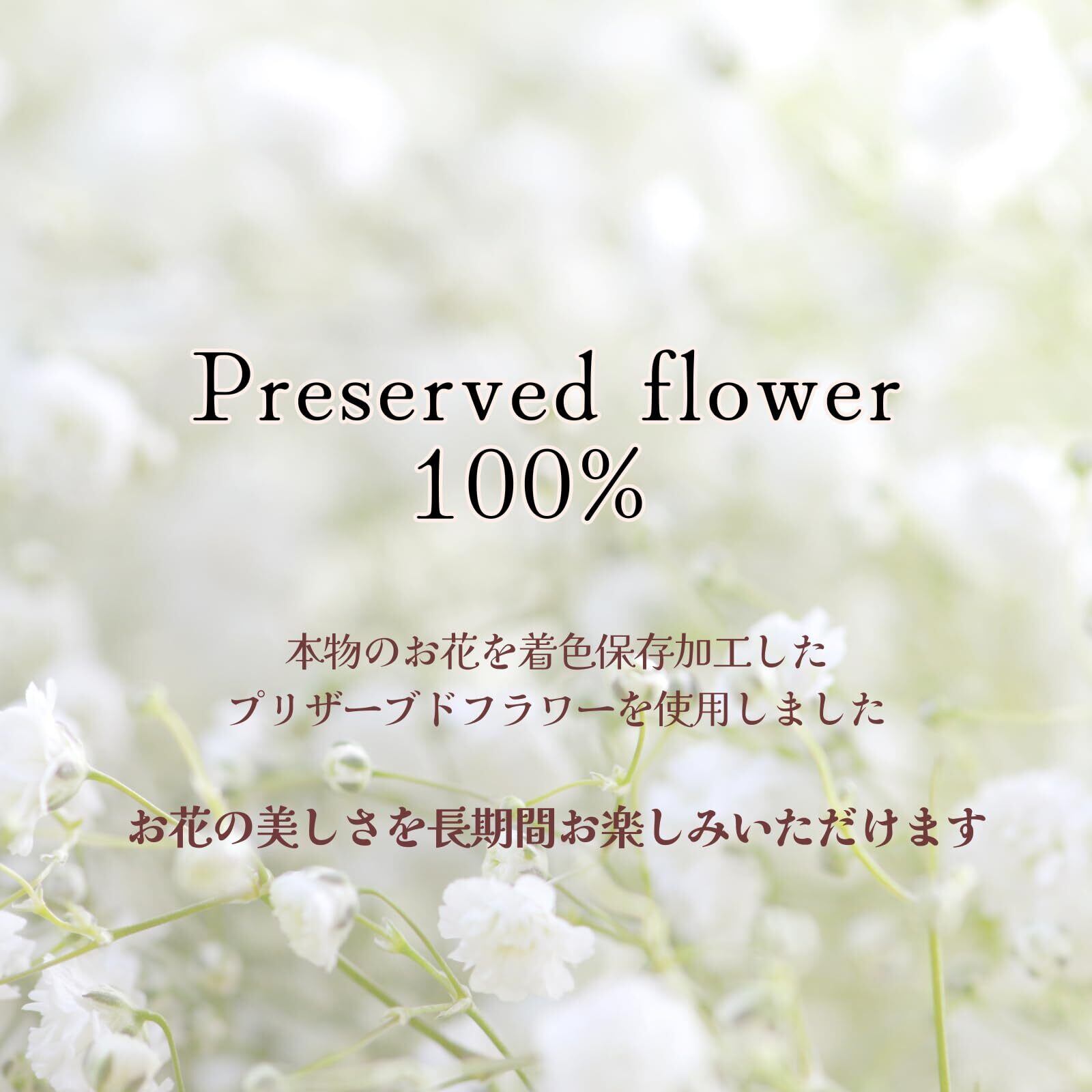 【当店でお作りしています】お花を選ぶところから、一つ一つの工程を手作業でお作りしています。色や形の異なる本物のお花を使用していますので、同じものは二つとない一つだけの商品です。高透明性の国内製造オイルを使用しています。