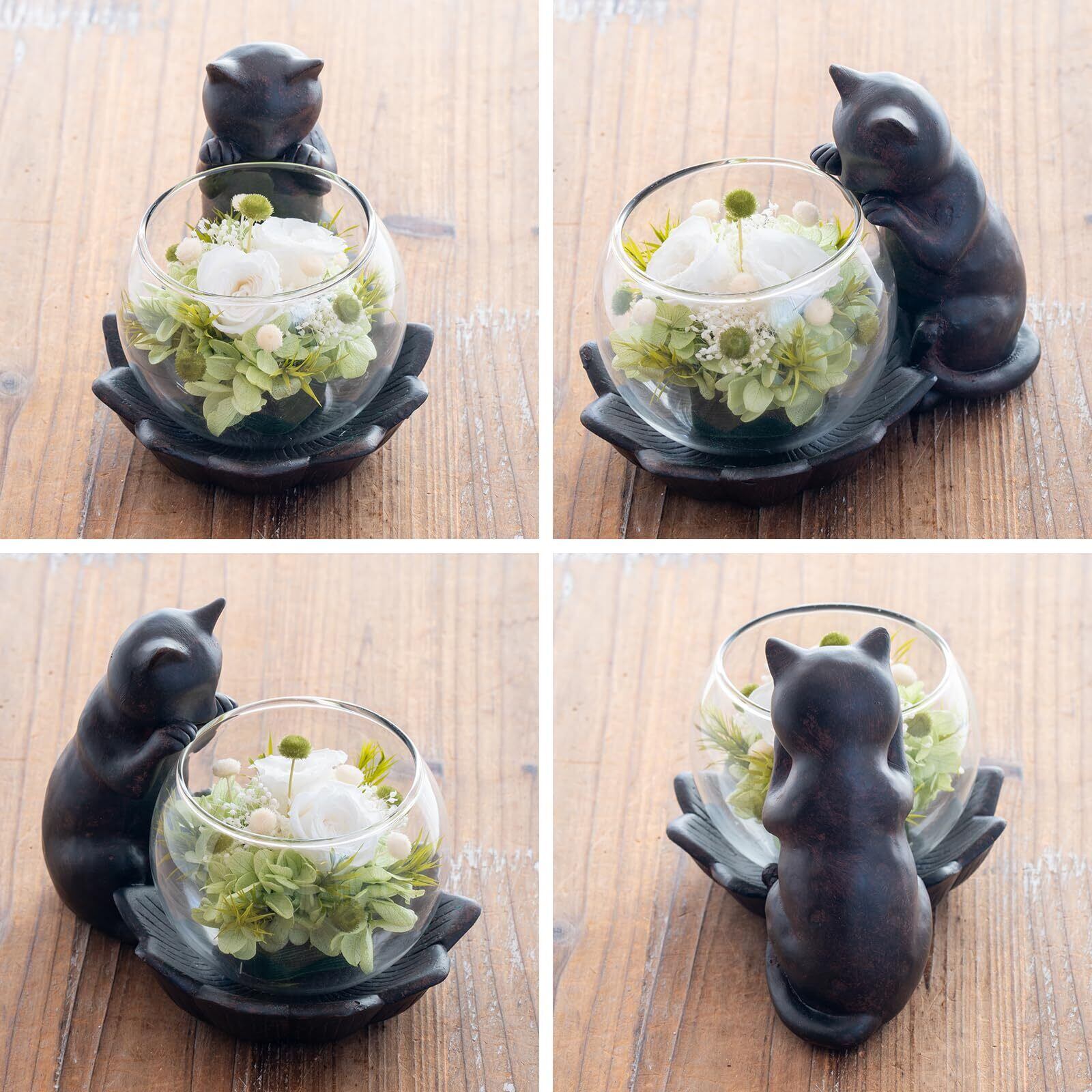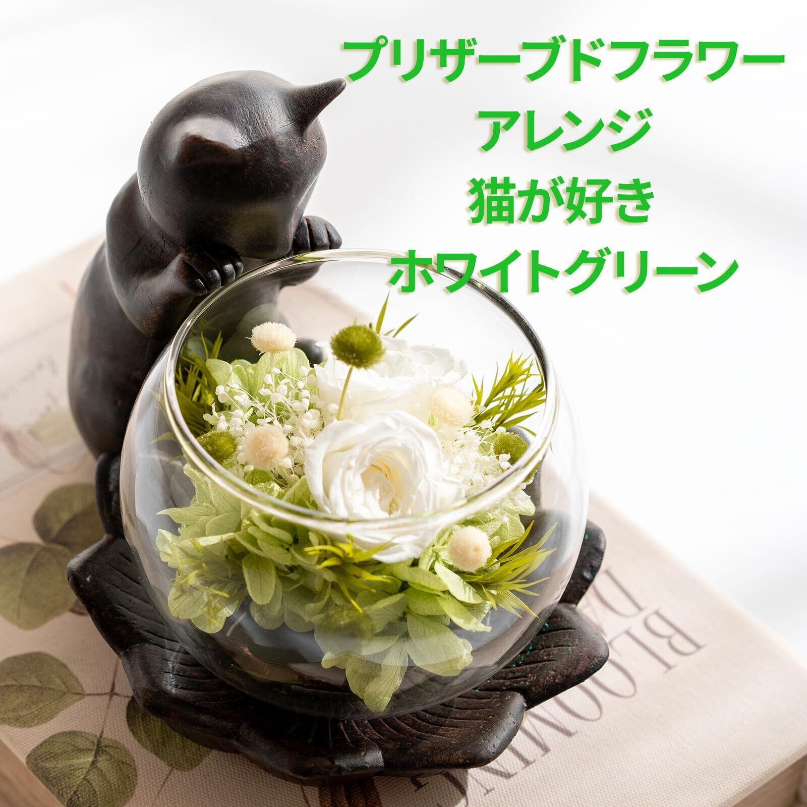 プリザーブドフラワー バラ 誕生日プレゼント 女性 人気 お祝い お供え 退職祝い ギフト 猫モチーフ (猫が好き グリーン)