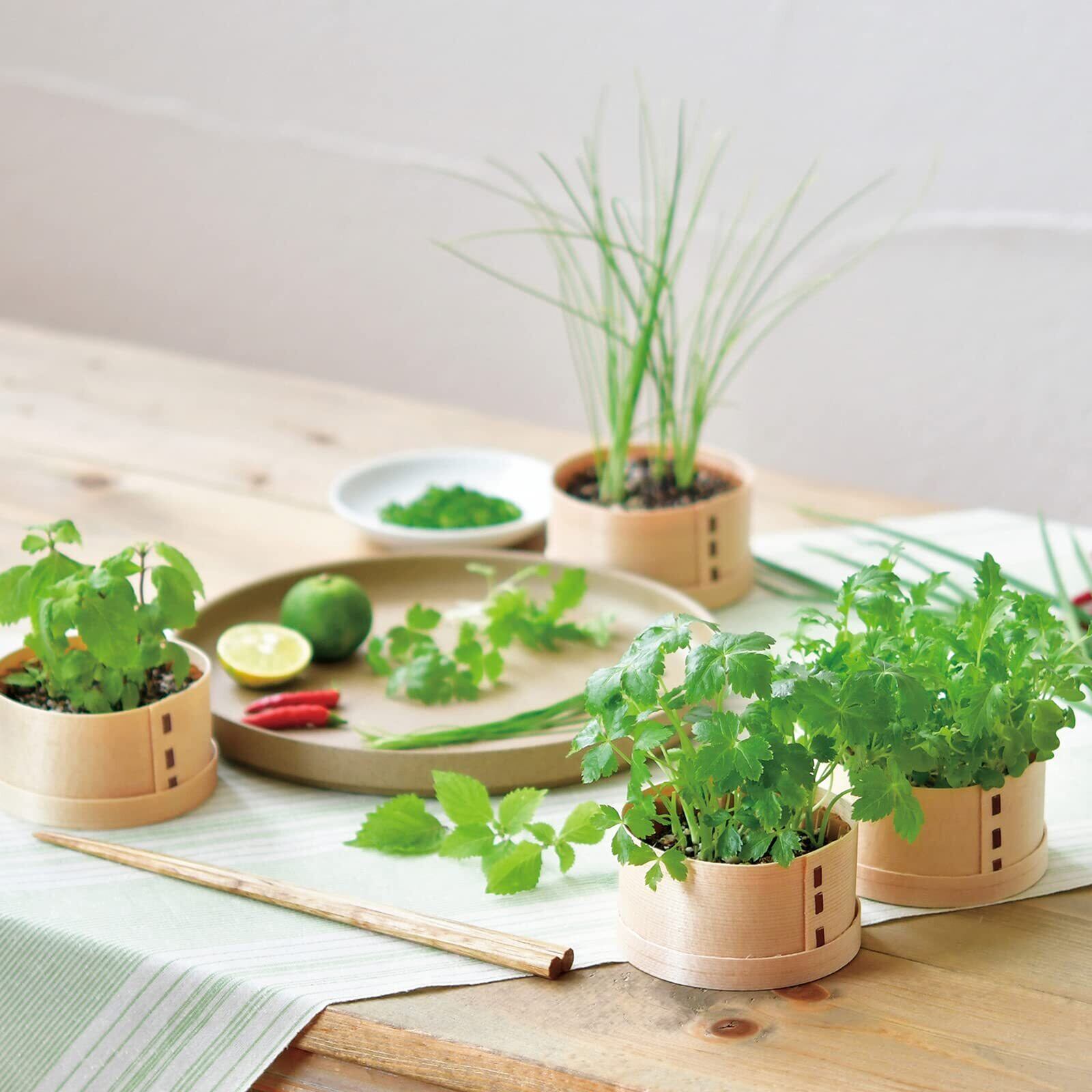 日本製の手作り曲げわっぱで和っ葉(和風の葉菜)を育てる栽培セット