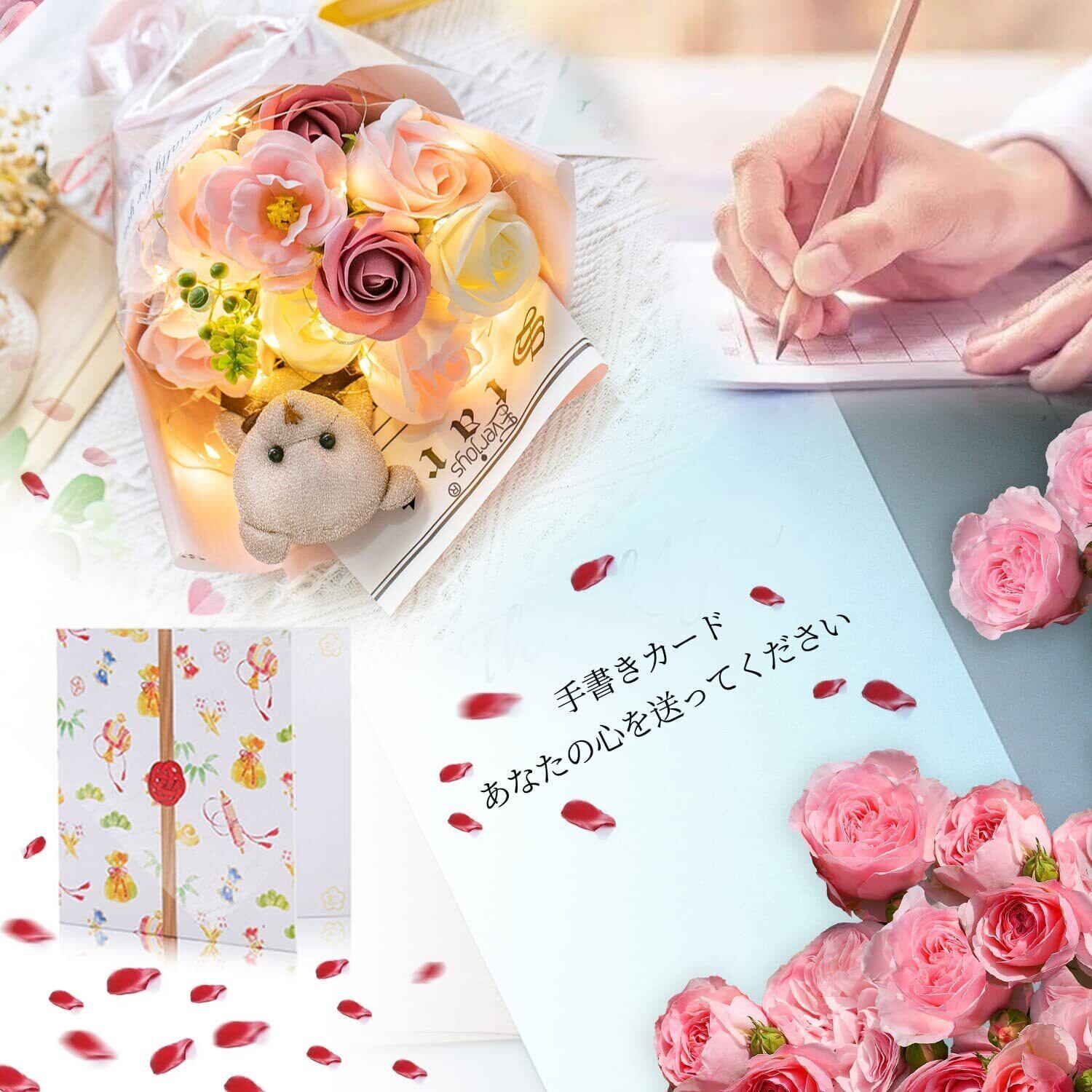 【特価セール】光る LED ライト 付き ソープフラワー 花束 バラ 造花 可愛いくま 誕生日 母の日 父の日 敬老の日 母のひプレゼント お祝い 女性 退職祝い 結婚祝い 花 発表会 フラワー ブーケ 石けん あすつく対応(ピンク)
