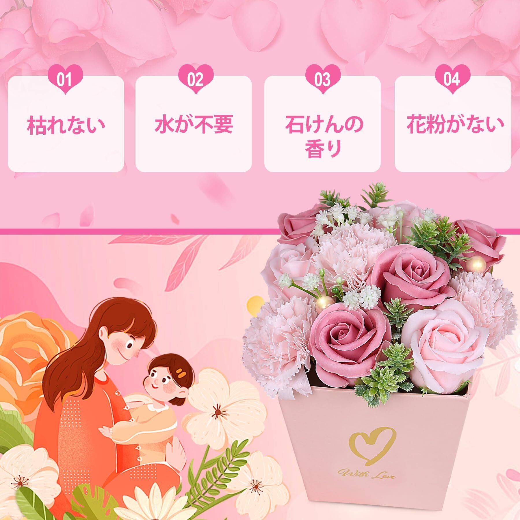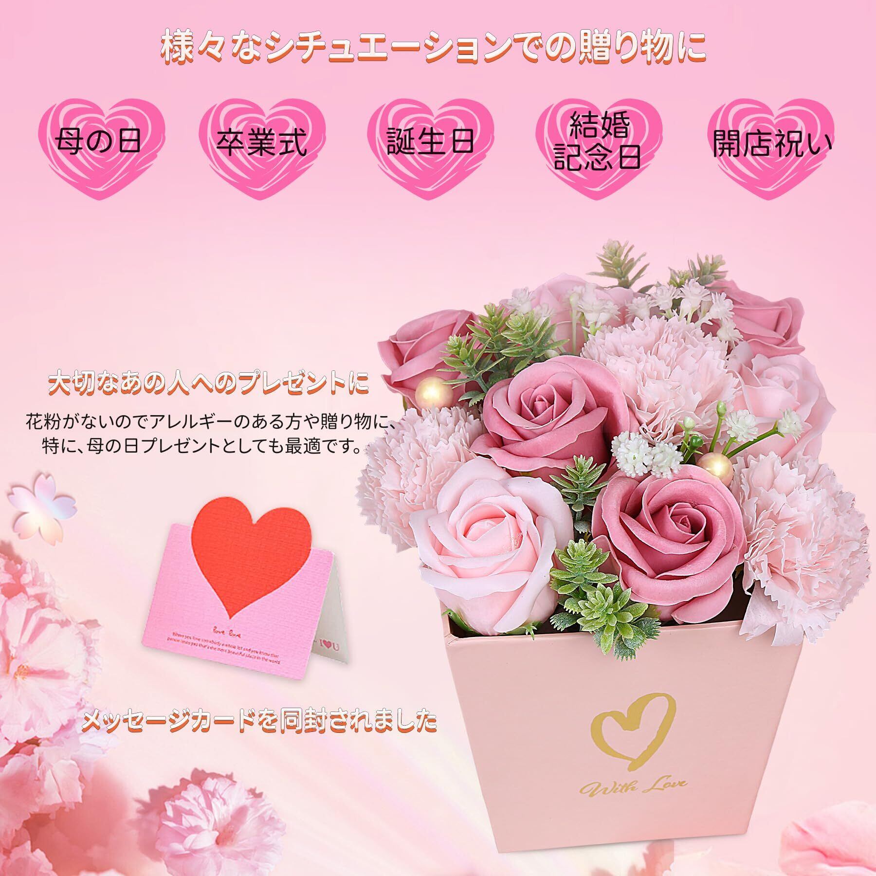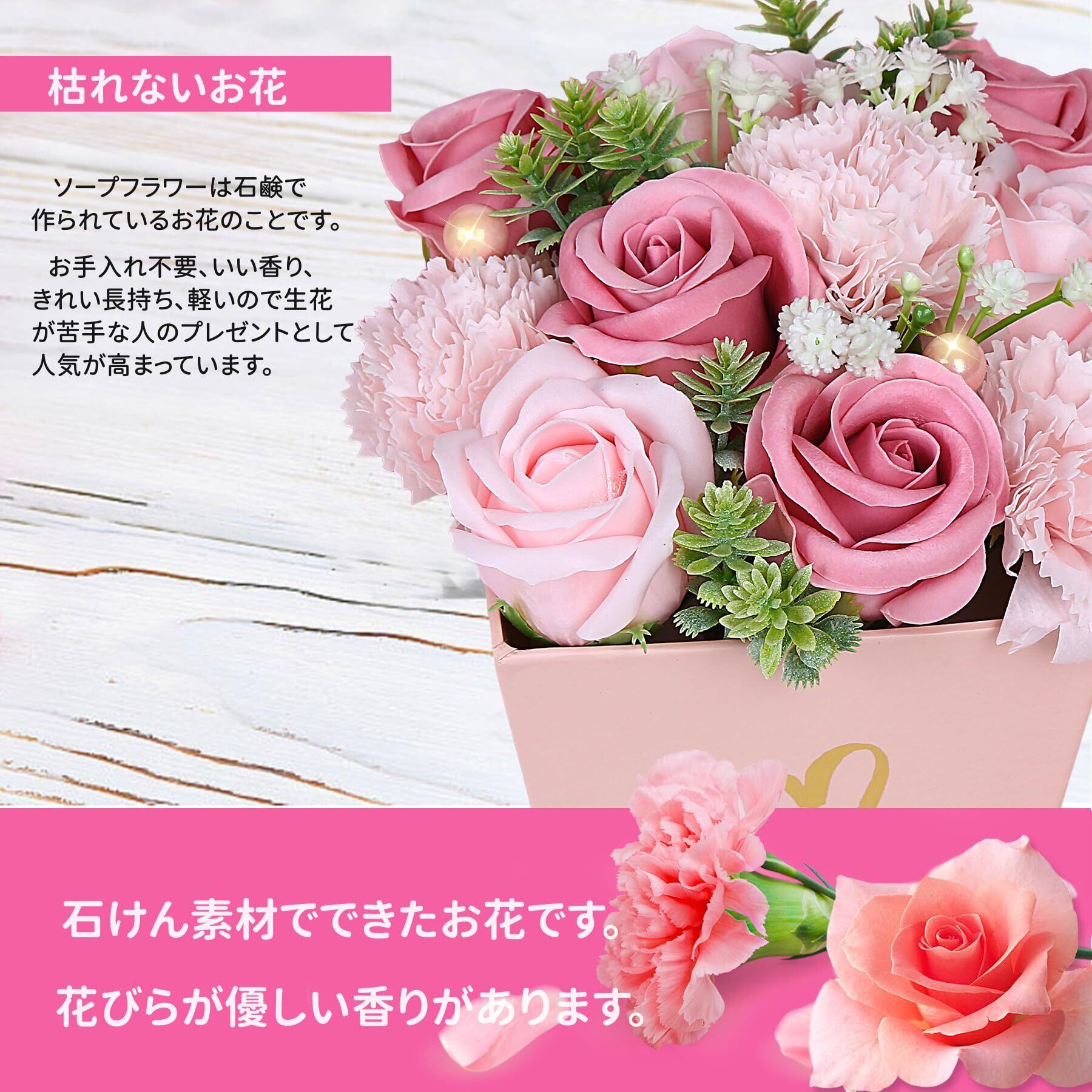 ソープフラワー 花束 卒業式 プレゼント ブーケ 母の日 ギフト 誕生日 枯れない花 造花 結婚記念日 開店祝い お見舞い お花 女性への贈り物 シャボンフラワー メッセージカード付き MIITO (ピンク)