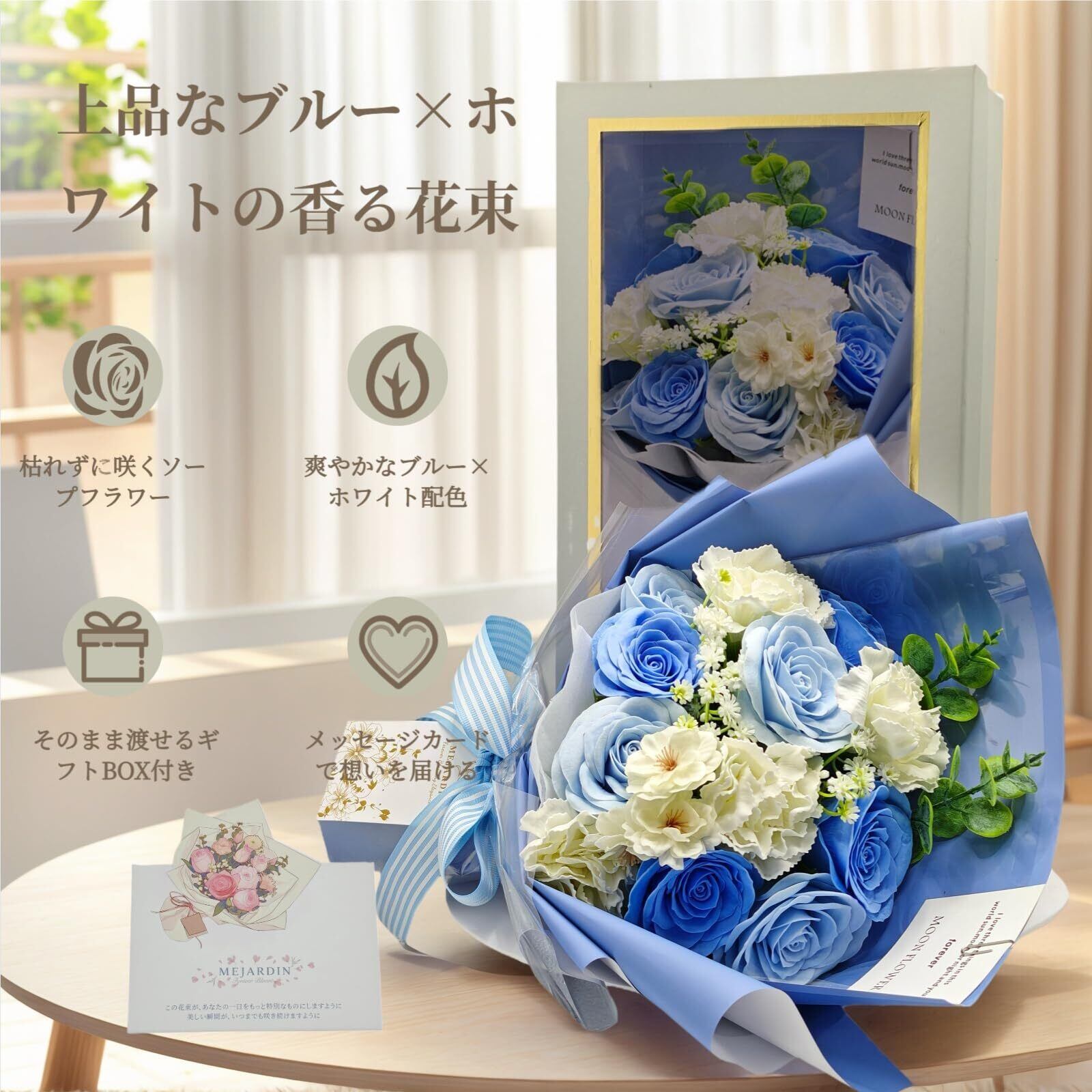 ソープフラワー 花束 ブーケ ギフト バラ 造花 rose flower bouquet フラワーソープ お花 開店祝い 誕生日 退職祝い 花 ギフト,青色