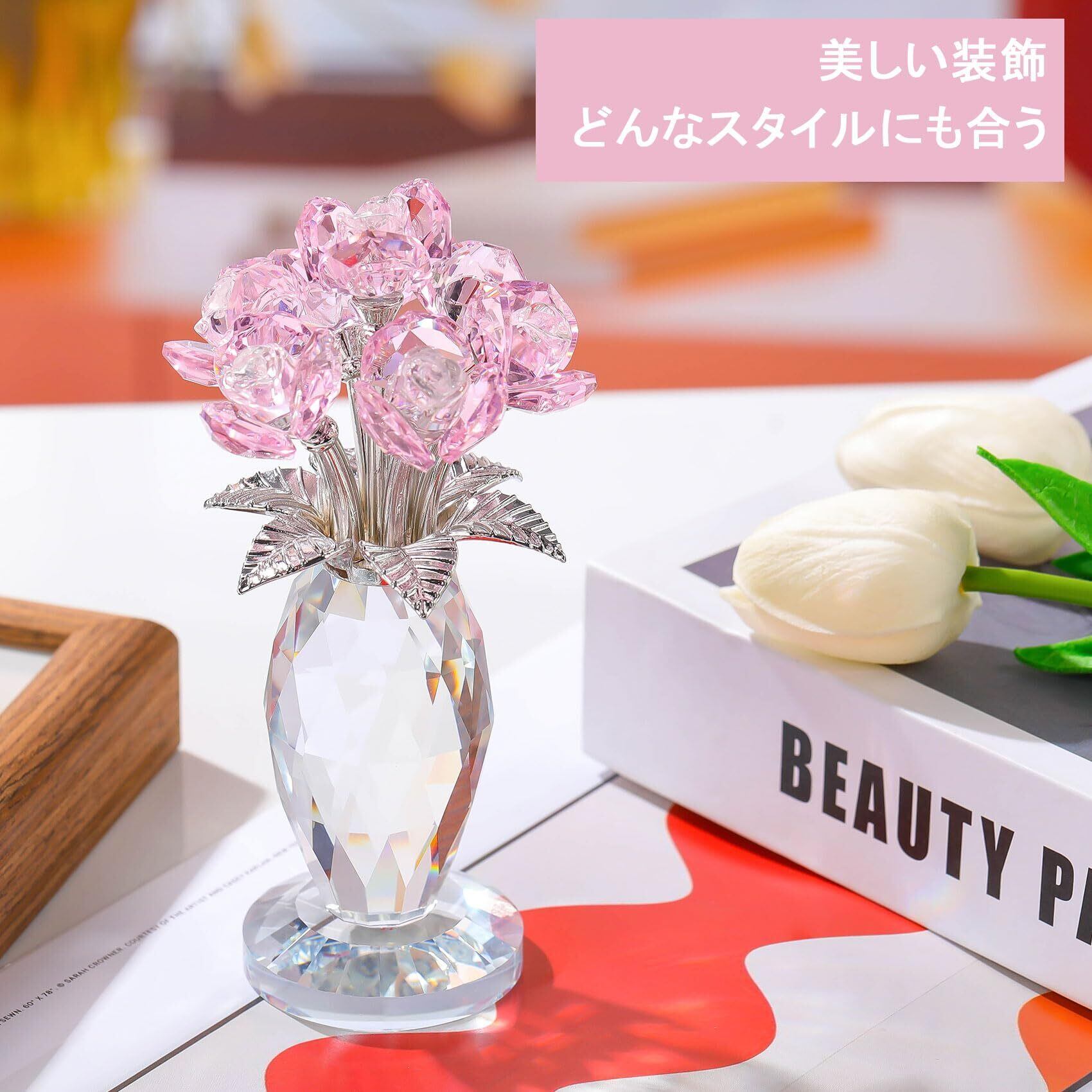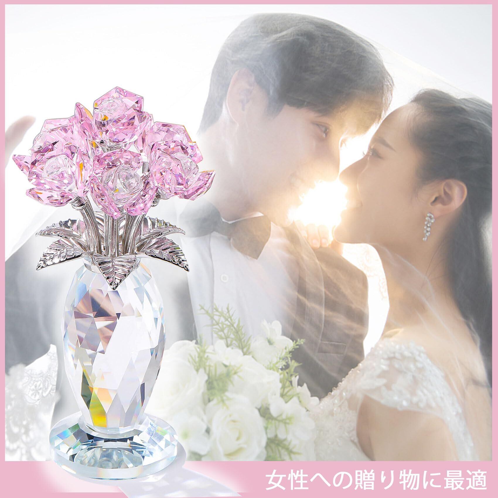 クリスタルフラワー 造花 インテリア 母の日 結婚記念日 妻 プレゼント【正規品】k9 バラ花 クリスタル 枯れない花 薔薇 ガラス細工 置物 誕生日プレゼント女性 人気 結婚祝い 送別会 卒業祝い クリスマス 退職祝い 卒寿 喜寿 ホワイトデー に適用 母親 義母 彼女への贈り物 - ピンク