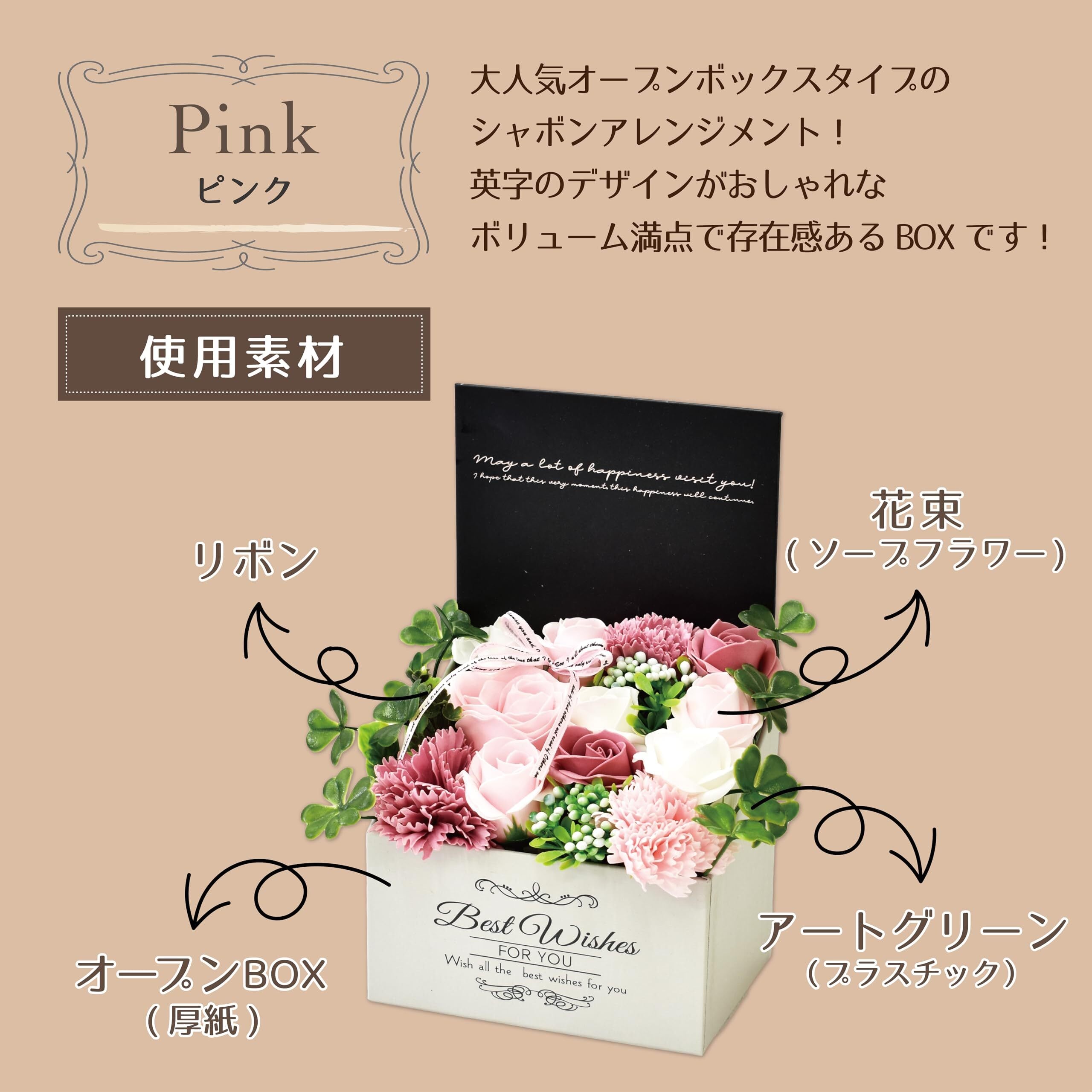 ポピー名古屋 ソープフラワー シャボンフラワー 造花 ギフト プレゼント 12輪ブーケ バラ ボックス 約16cm MK-009 ピンク