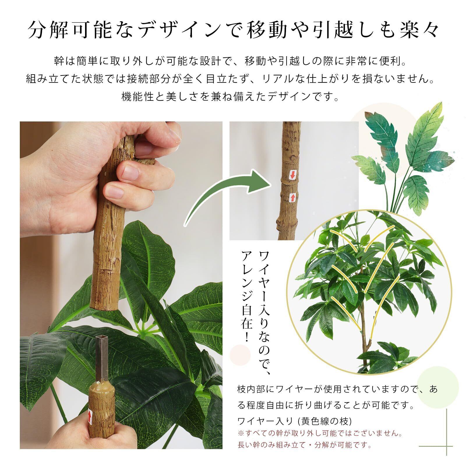 品名:人工観葉植物-パキラ(組立半完成品なので少々の組立は必要がある) サイズ:奥行60 x 幅60 x 高さ120CM (鉢などの具体的なサイズは画像にご参考ください)主素材:プラスチック ご注意:本品は手作りのため、葉の密度や高さなどは統一しておりますが、外観には多少の個体差が生じる場合がございます。何卒ご理解賜りますよう、お願い申し上げます。