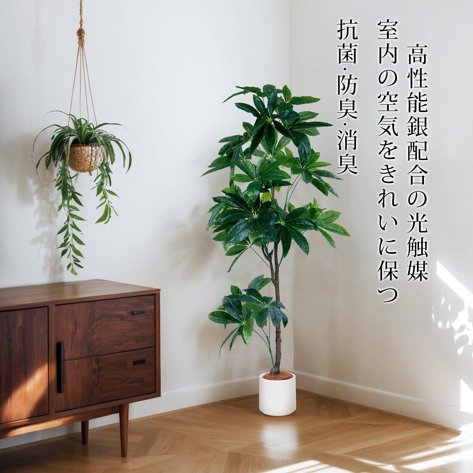 フェイクグリーン 大型 歓葉植物 フェイク 人工歓葉植物 光触媒 室内 水やり不要 お手入れ簡単 空気清浄 消臭 抗菌 シンプル おしゃれ 室内 インテリア 大型 人工 鉢植え 鉢付き お祝い 父の日(パキラ,120cm)