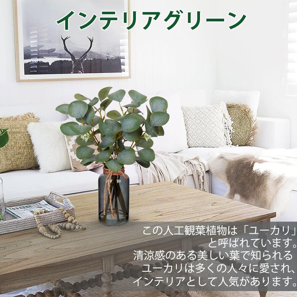 【大活躍なアイテム】この人工観葉植物は「ユーカリ」と呼ばれています。清涼感のある美しい葉で知られるユーカリは多くの人々に愛されています。ユーカリの花言葉は、「再生」「新生」「思い出」「記憶」「慰め」「追憶」「永遠の幸せ」などがあります。特別な瞬間や大切な人への贈り物にもぴったりですよ。ぜひ様々な場面で活用してみてくださいね。