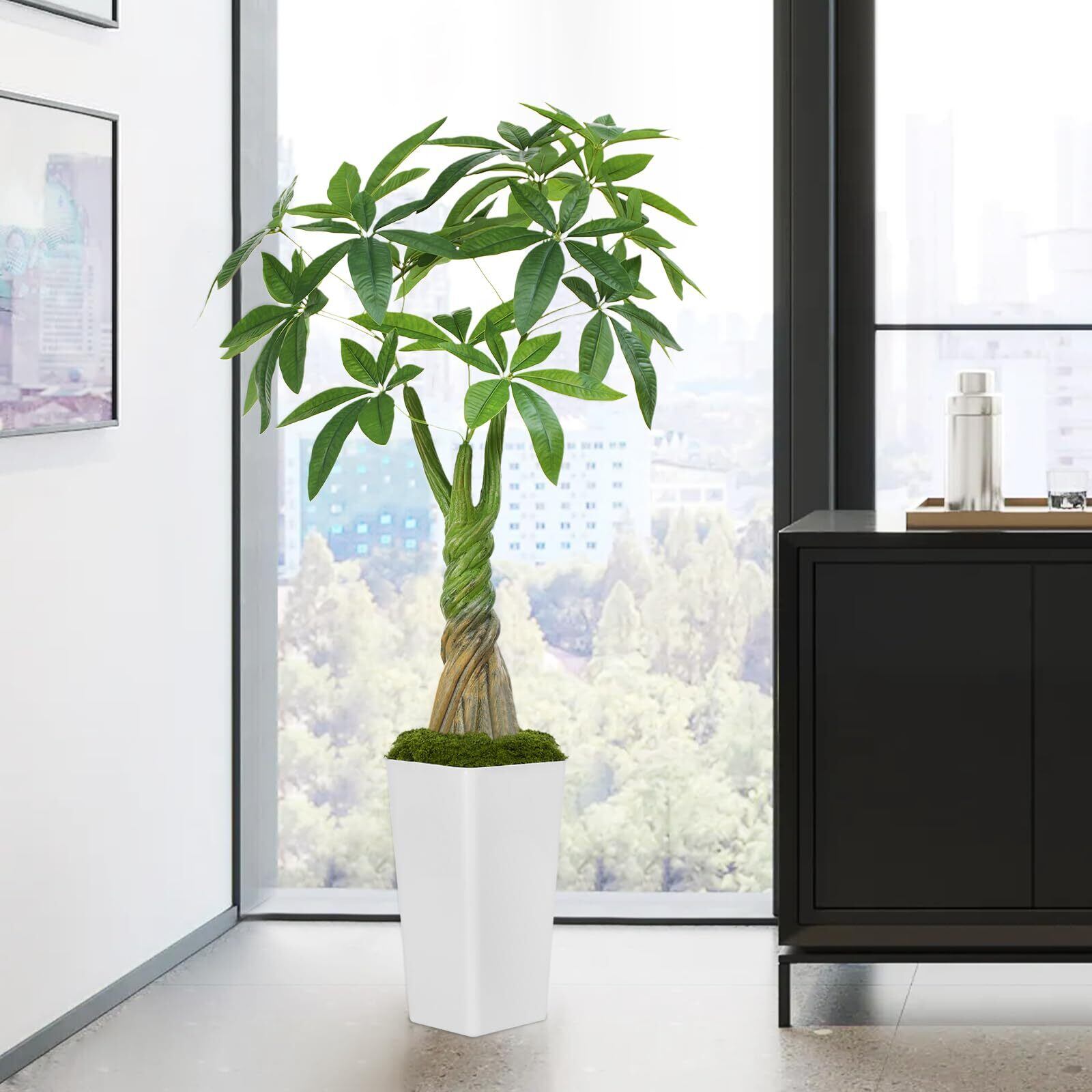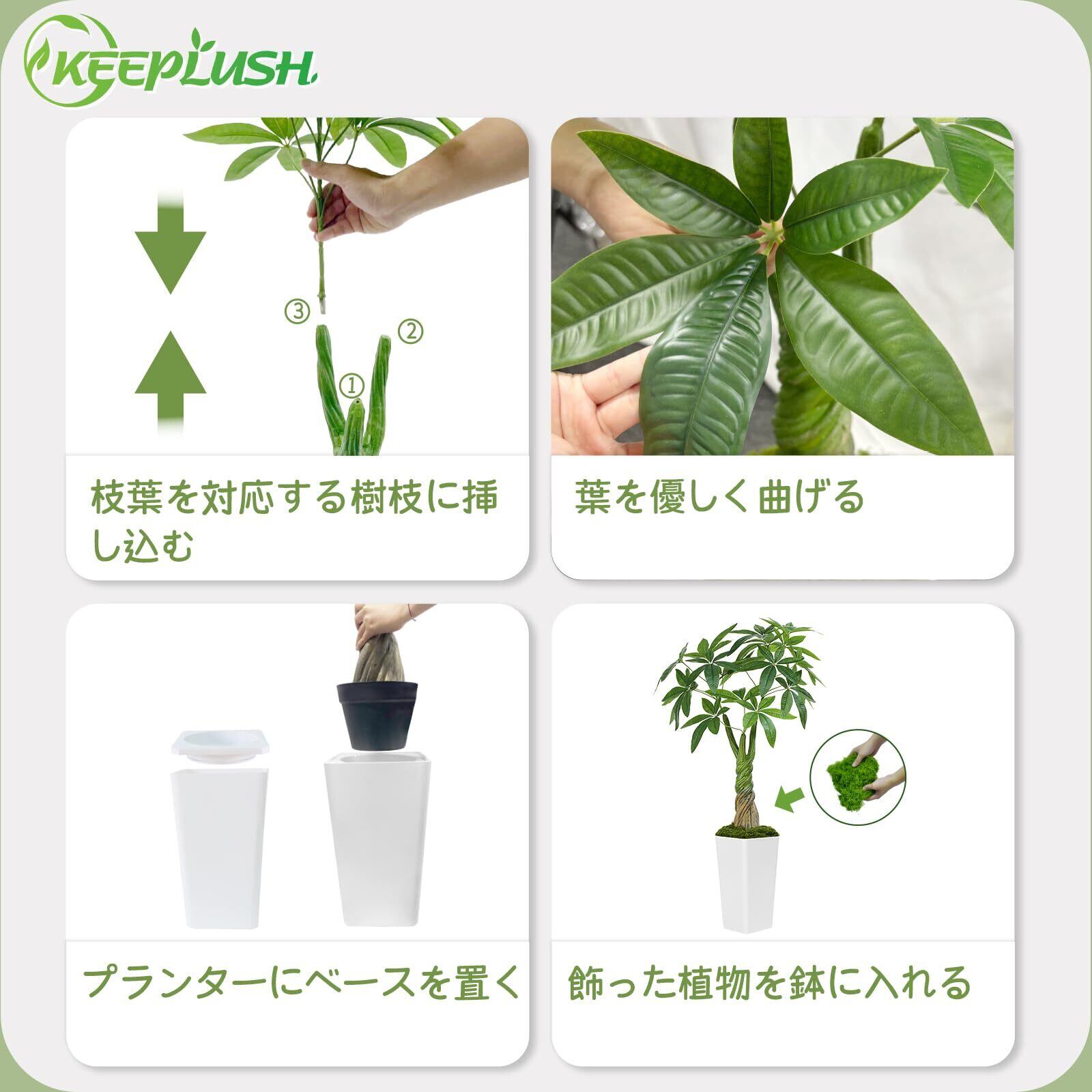 【新着商品】Keeplush【パキラ 多幸の木】高さ120cm フェイクグリーン 大型 観葉植物 フェイク 18本枝葉 光触媒 空気清浄 消臭 抗菌 白色高級鉢付き 室内用 おしゃれ インテリア 観葉植物 玄関 リビング オフィス プレゼントに