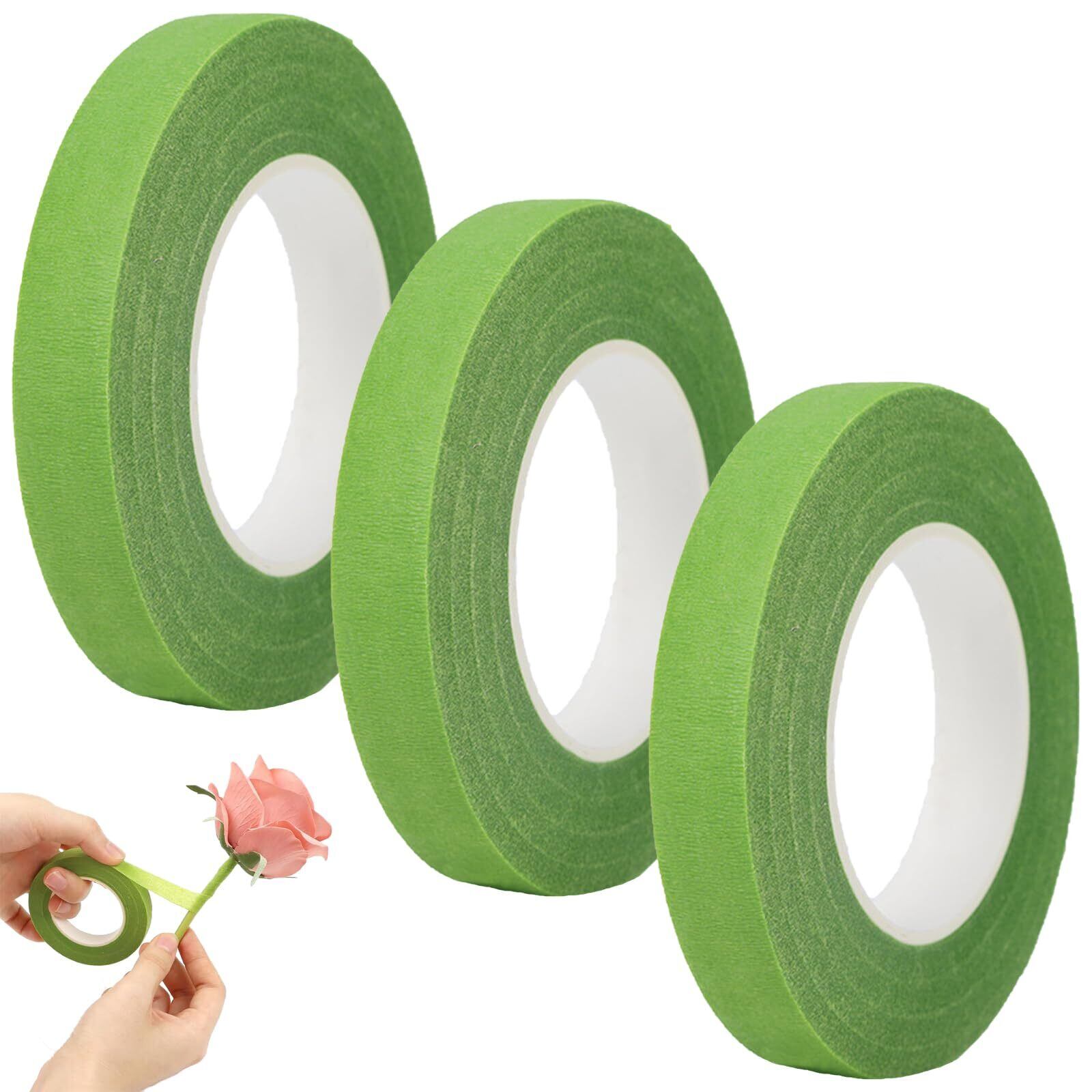 【新春セール】フローラテープ 造花 ドライフラワーテープ 花の茎のラッピング用 花屋 ブーケラップ用 手芸 DIY 花材 3巻入(ライトグリーン)