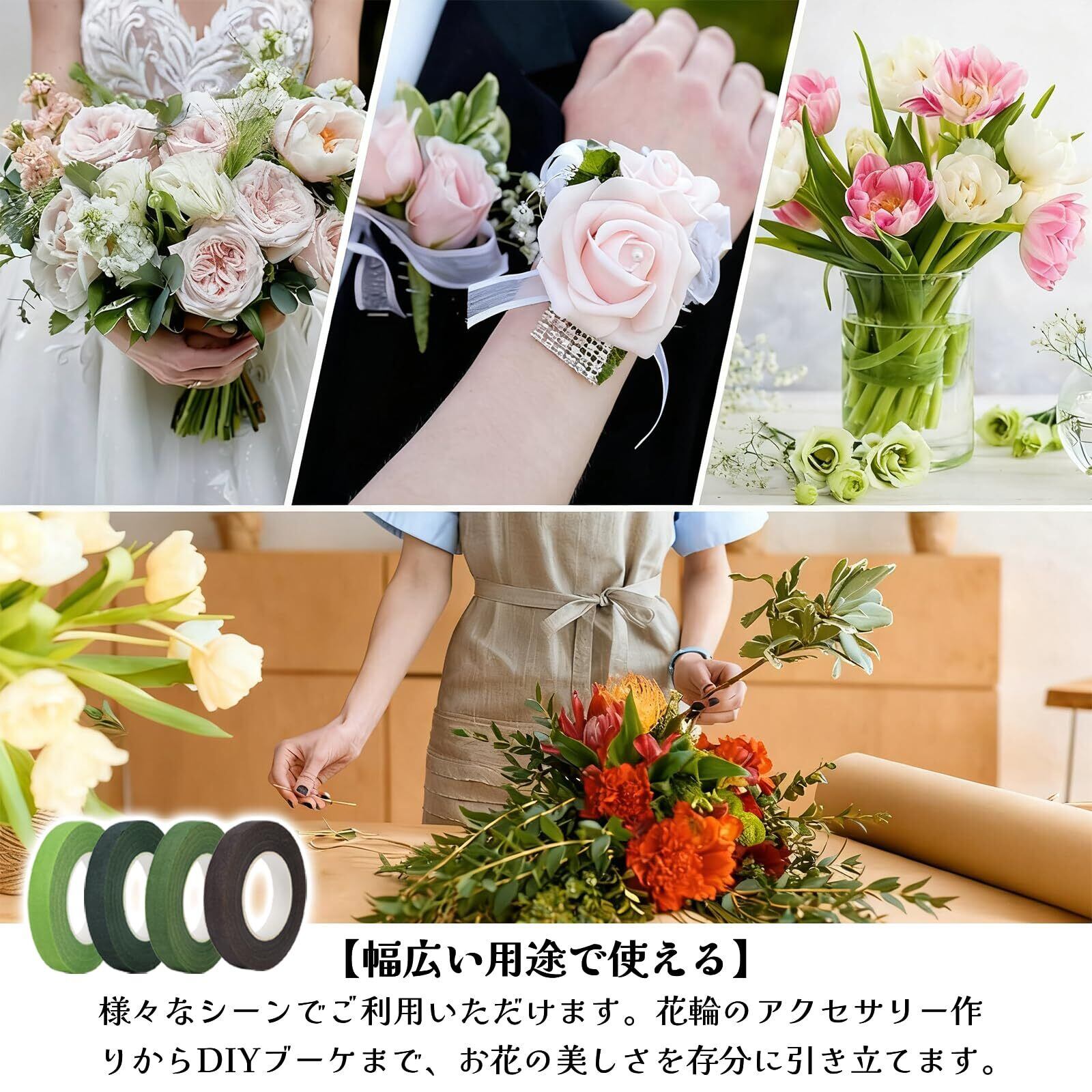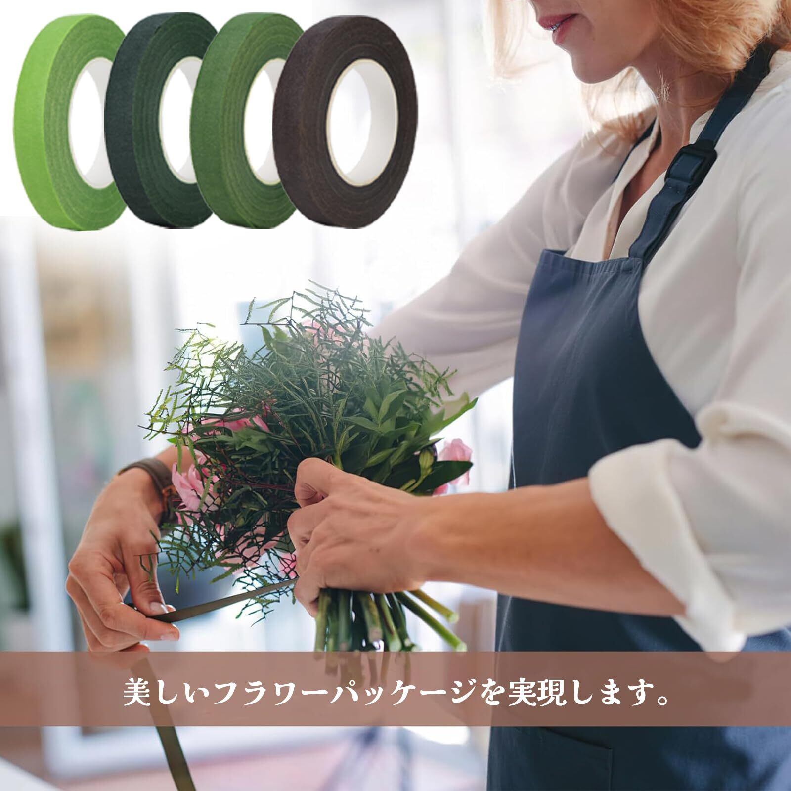 【複数色】 ブラウン・草色・ダークグリーン・ライトグリーンの4色から選択可能。自然な質感で生花や造花の茎に馴染み、美しい仕上がりを実現します。