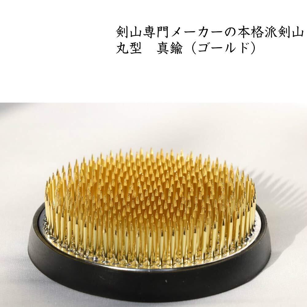 京都 花明かり 剣山 生け花 丸剣山 ゴムリング付き 日本製 本格派 花留 (特大丸, 真鍮(ゴールド))