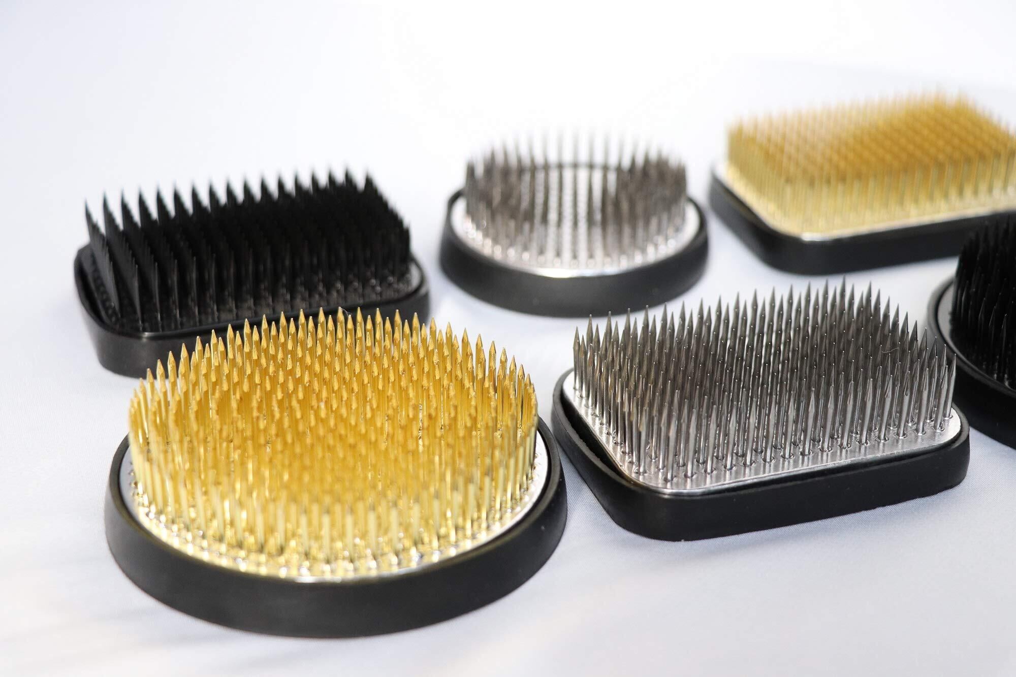 鮮やかな輝きの真鍮針、硬く錆びにくいステンレス針、落ち着いた雰囲気と風格で人気の黒剣山等、幅広い色・サイズをご用意しております。