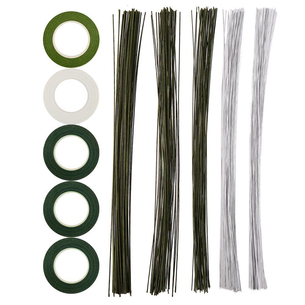 【セット内容】:白いテープx1個、浅い緑テープx1個、深い緑テープx3個、深い緑地巻ワイヤー(#18 #20 #22)各50本、白い地巻ワイヤー( #24 #26)各50本です。