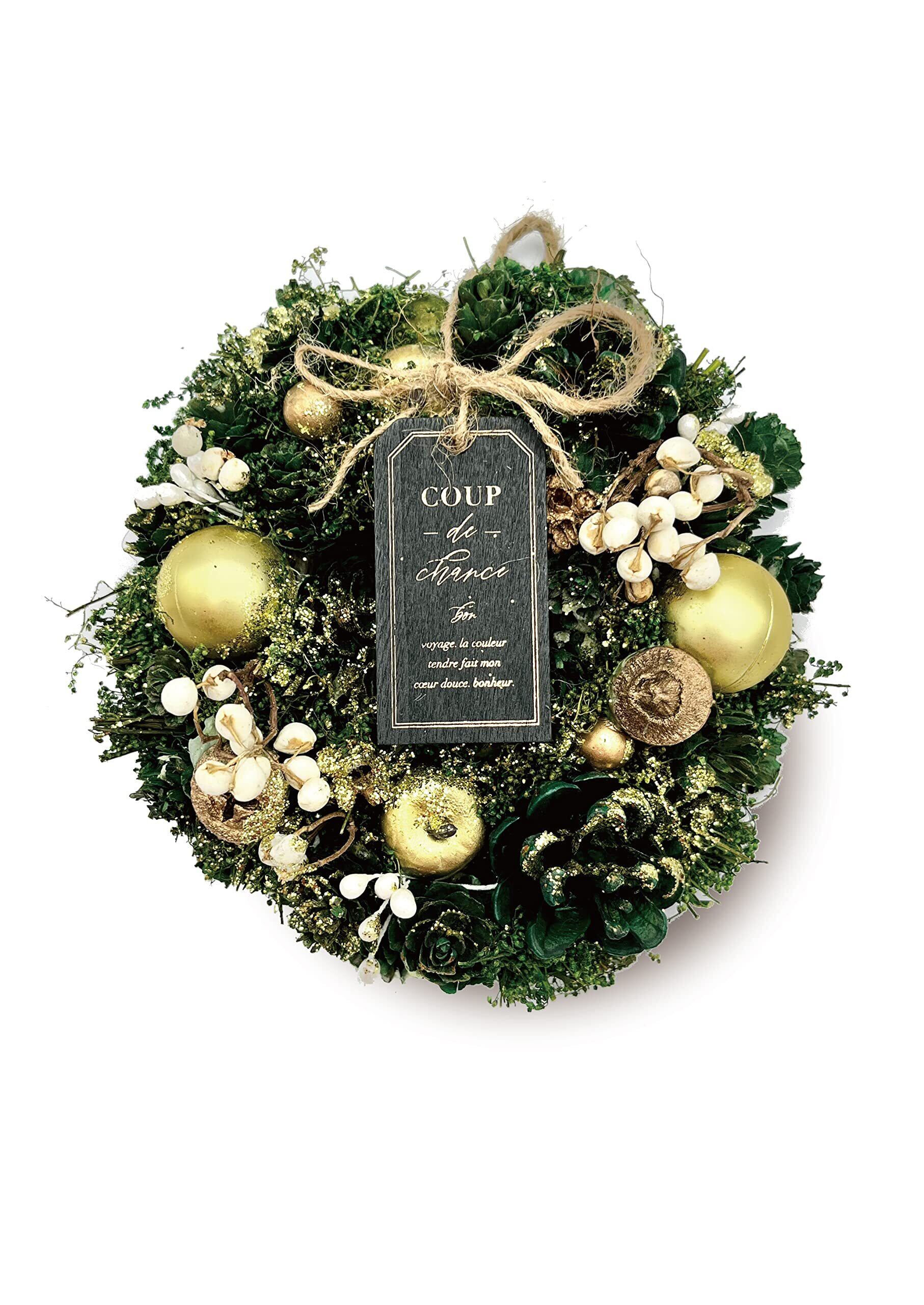 【2022最新】[ 2025年 mamawreath ウィンターリース ]クリスマスリース クリスマス 冬 玄関ドア 玄関飾り グリーン 緑 深緑 ゴールドラメ フラワーリース クリスマスグリーンラメ Sサイズ : 16cm (直径)× 5.5cm (厚み) WR-28-D