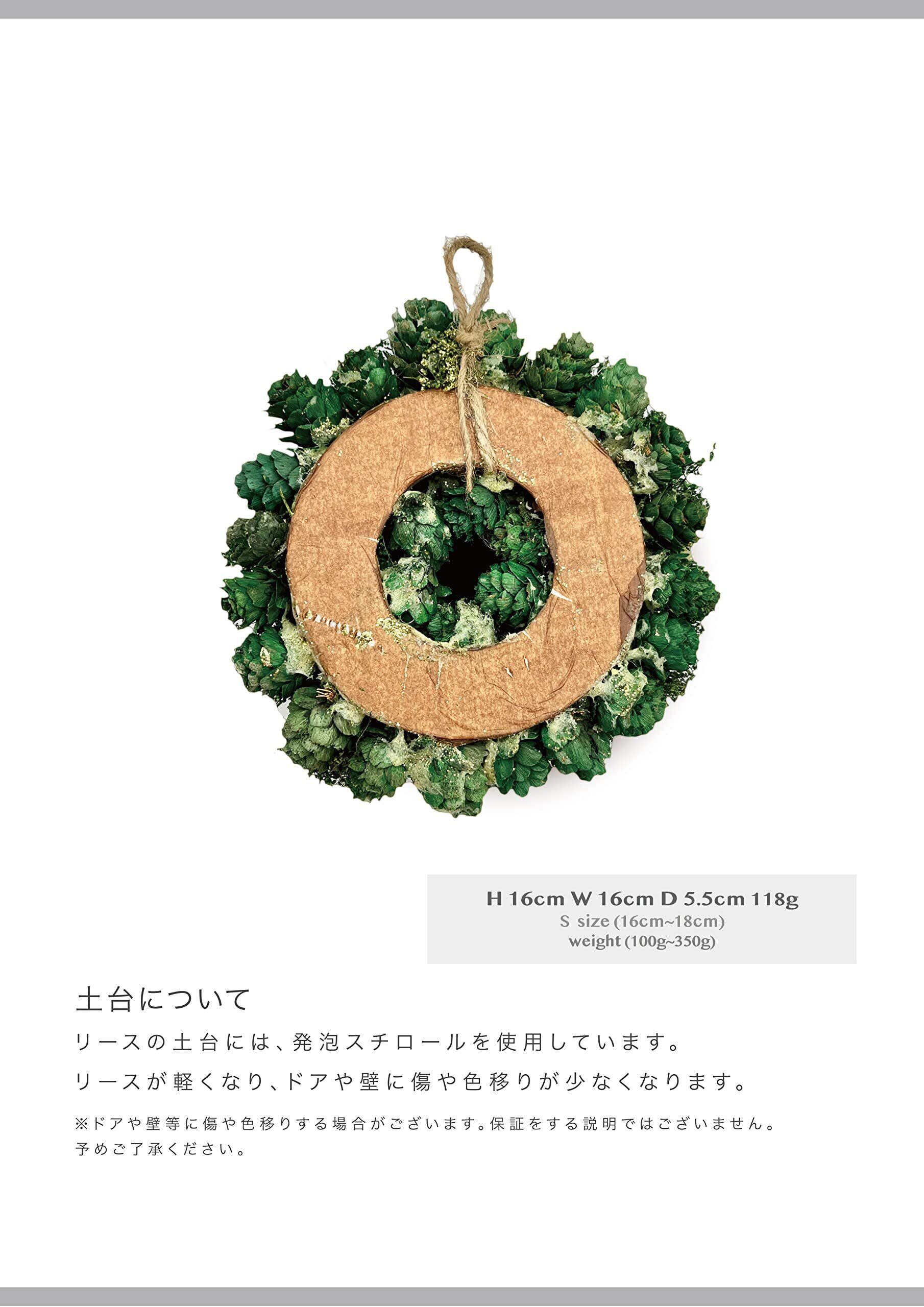 空間の彩りに - - - リースはお家やお部屋のアクセントとして彩りを加えてくれます。 スタンドを使うことによって飾れる場所も増え、下駄箱・テーブル・棚などにも立て掛けて飾れます。お部屋のテーマやコンセプト・インテリアに合わせて飾ったり、あえて調和させずに差し色として飾るのも良いかもしれません。 キレイや可愛いはプラスαの力を与えてくるもの、空間に彩りを加えてみて下さい。