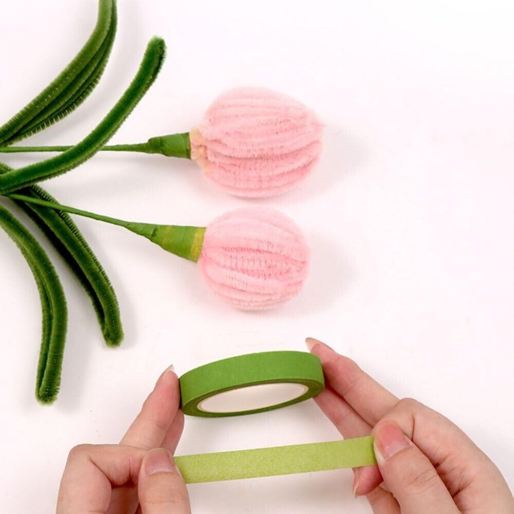 貼り付けが簡単:フローラルテープは伸ばせばくっつくので、茎やワイヤーをしっかりラッピングできます。