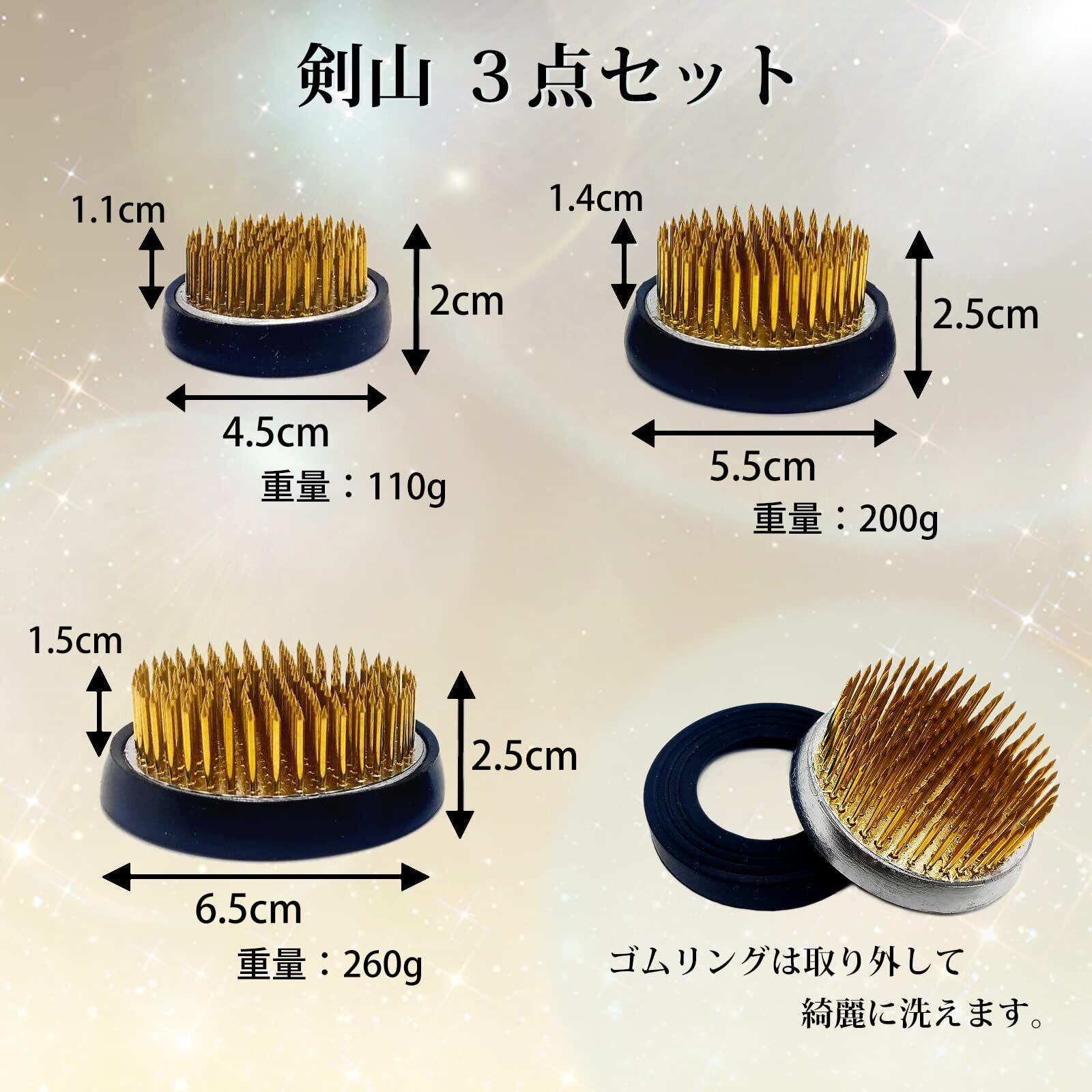 ゴムリング付き剣山3点セット(3.5㎝、4.5㎝、5.5㎝)です。初心者から上級者まで幅広くご使用できるセットです。