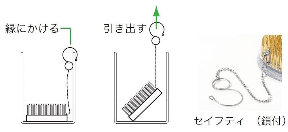 剣山を簡単に水から取り出せる鎖とフックが付いています。