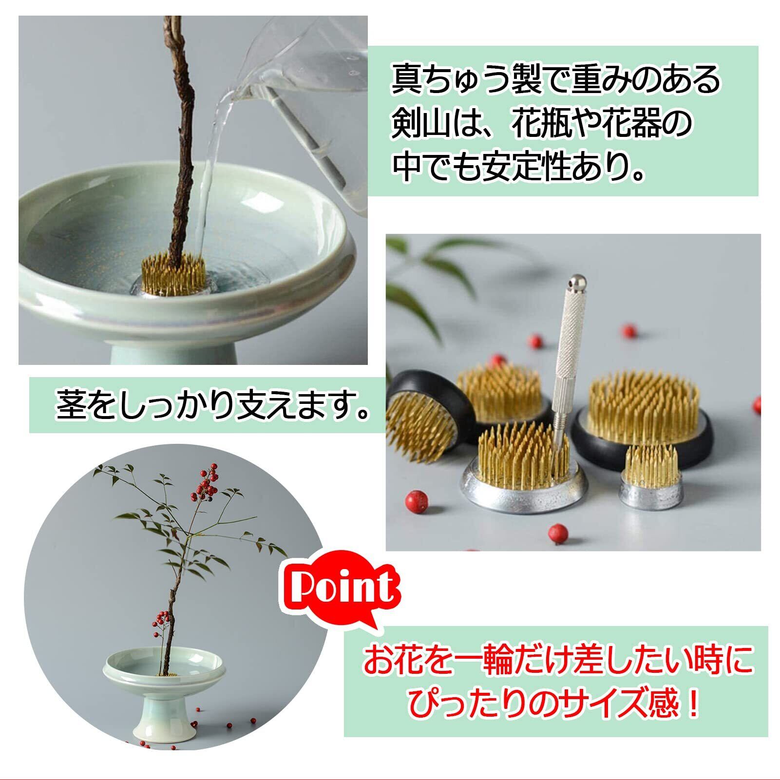 花材が少なくても空間を活かした活け方を楽しめます。円形なので、いろいろな形の花器や花瓶にぴったり!まずは揃えたい形の剣山です。