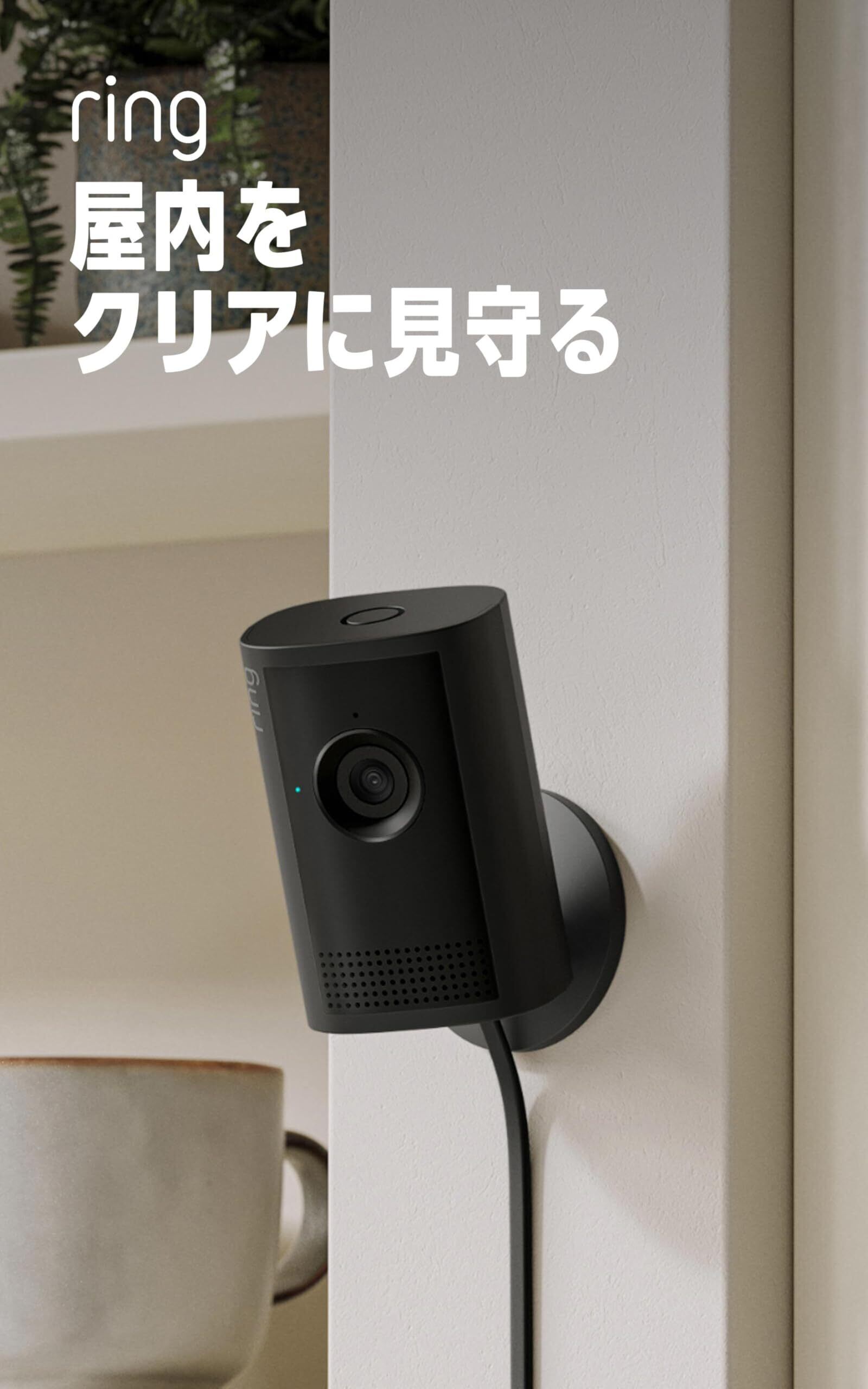 【新春セール】【New】Ring Indoor Cam Plus (リング インドアカム プラス) | レンズカバー付き高画質・広角2Kビデオの屋内用セキュリティカメラ | 4倍ズーム・モーション検知搭載 | Ring Home プラン30日間無料体験付き - ブラック