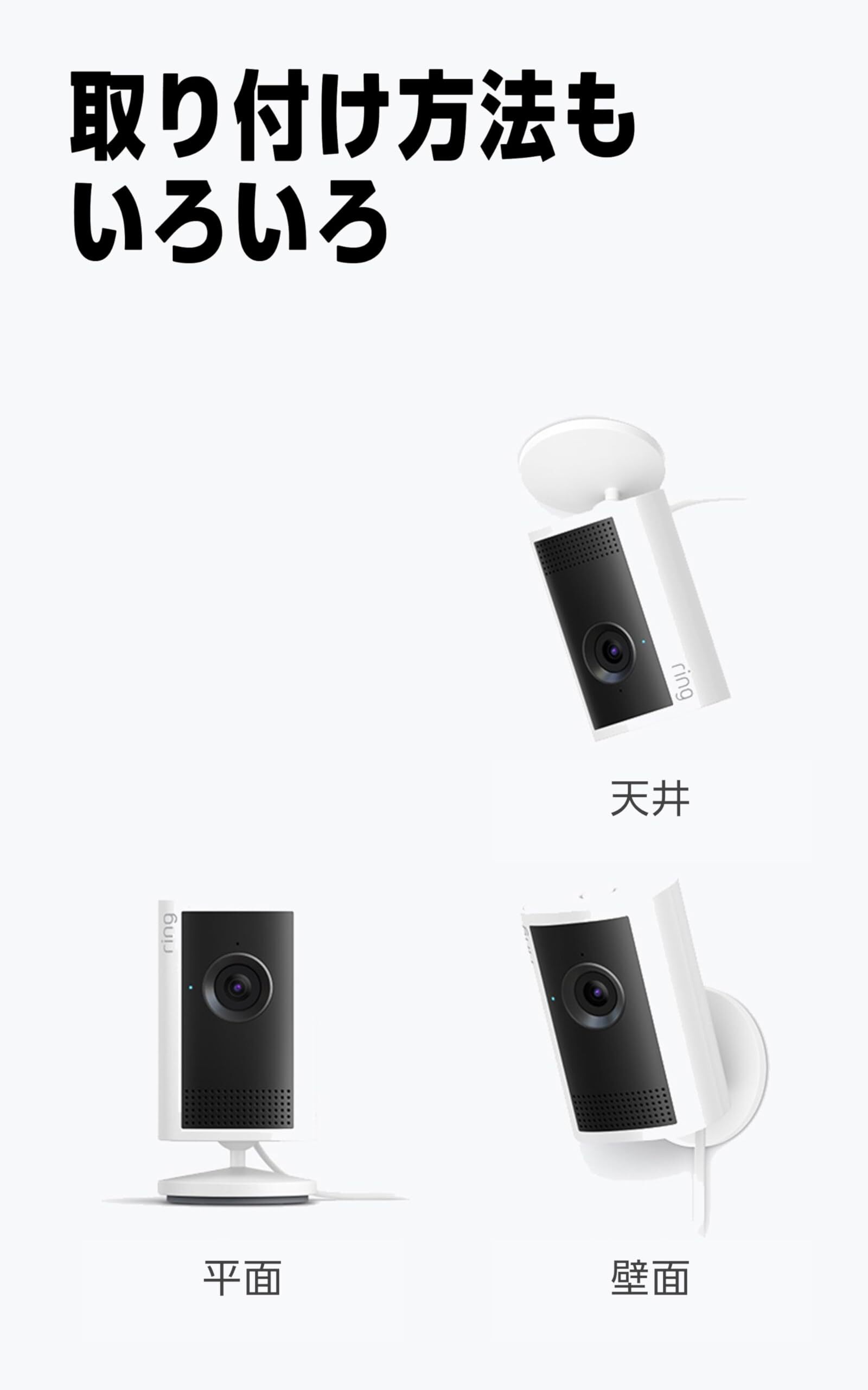 【取り付け方法もいろいろ】平置き、壁面や天井にも取り付け可能。天井に取り付けた場合は、カメラ映像も上下反転の設定も。
