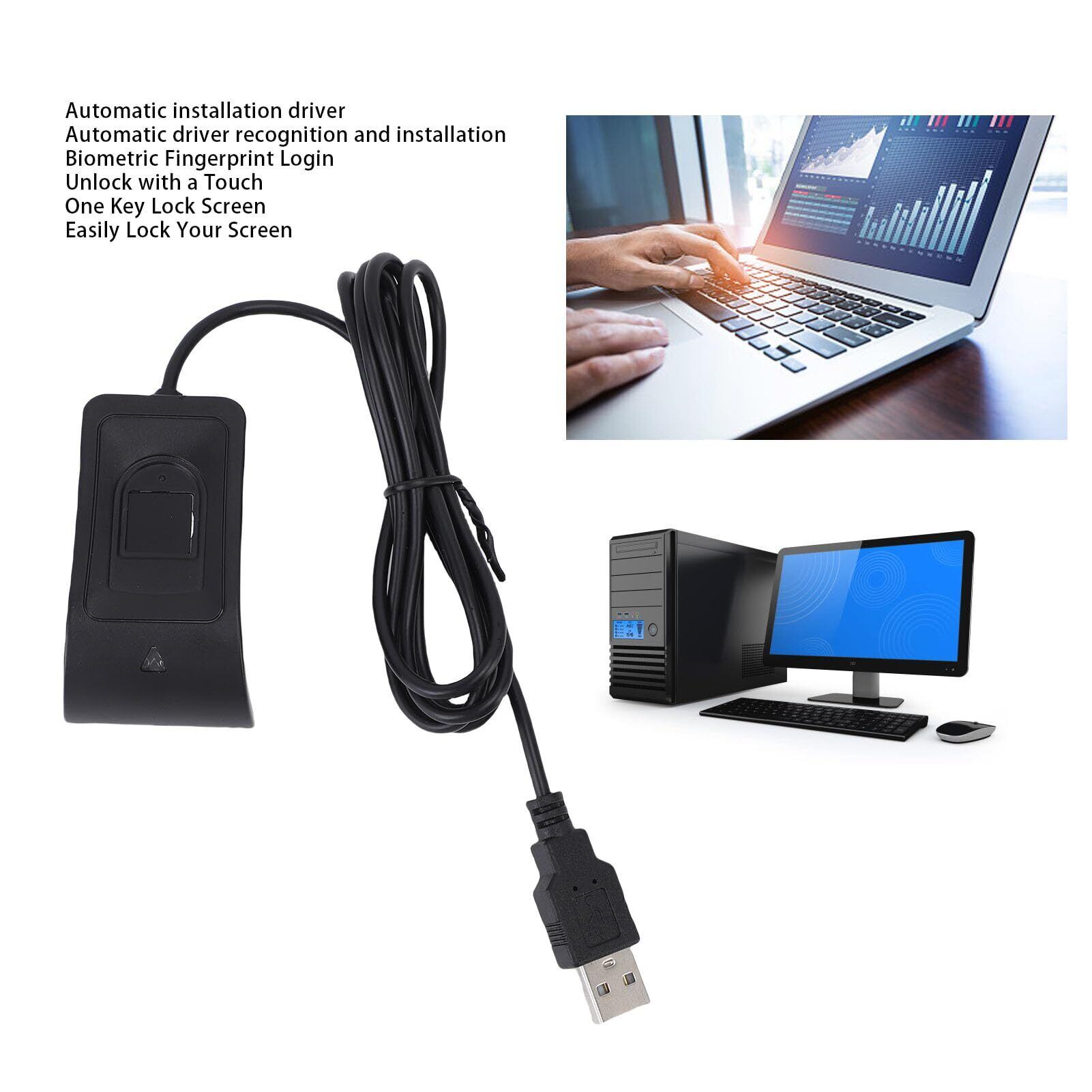 プラグ アンド プレイ: USB 指紋リーダーは WINDOW 10、11、およびそれ以降のシステムをサポートしており、リーダーを USB ポートに接続するだけで安全なログインが可能になり、不正なデバイス アクセスを防止できます。追加のソフトウェアのインストールは必要ありません。