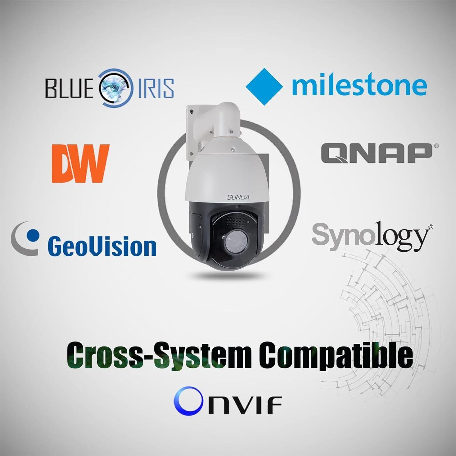 【SUNBA P636】屋外用防犯カメラ、36倍光学ズーム、528倍デジタルズーム、PoE + 給電PTZカメラ屋外、、5MP、AI 自動追跡、 IP66 防水、赤外線到達距離300メートル、ドームセキュリティカメラ