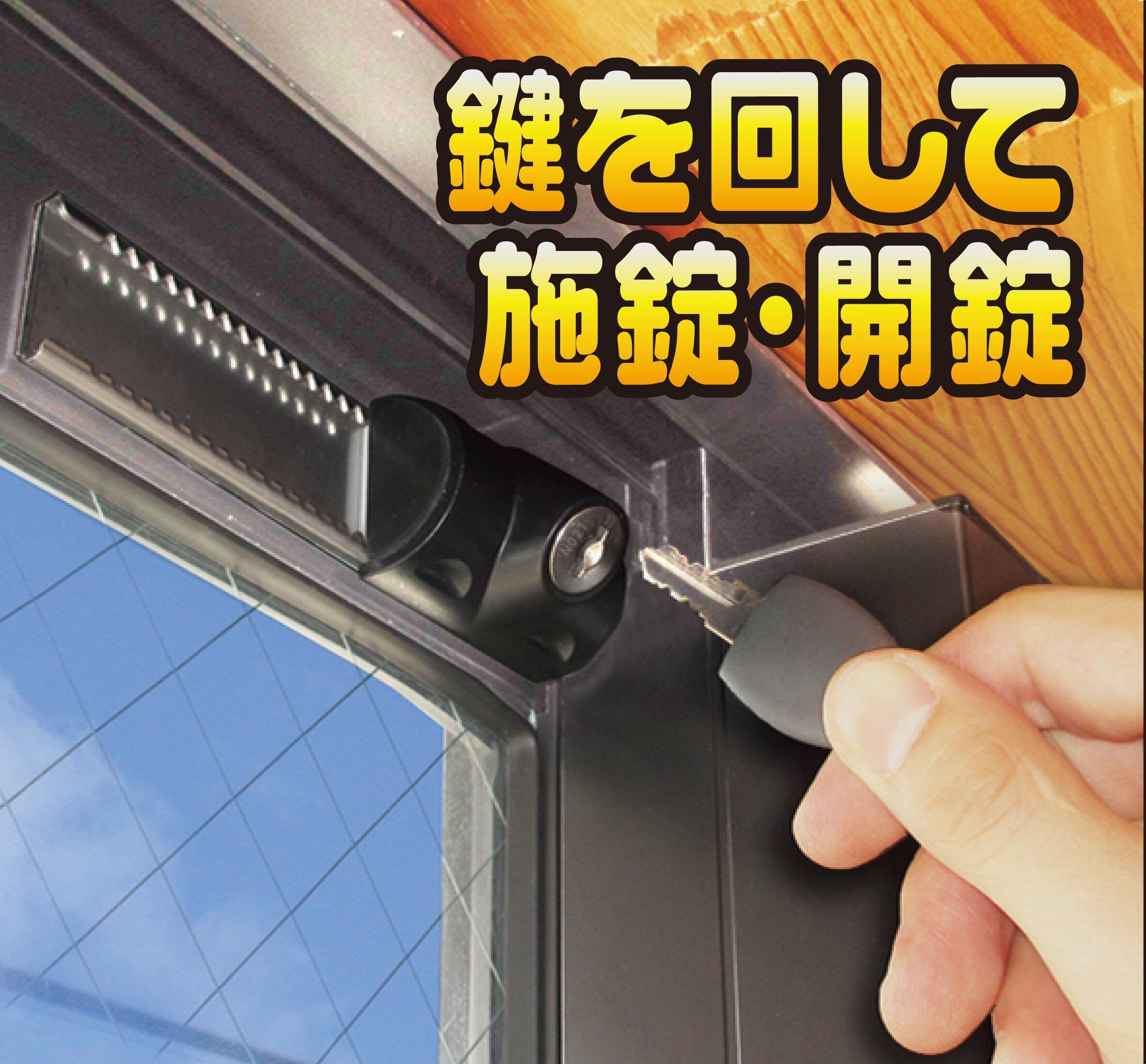 サッシ枠に貼り付けるだけで、防犯補助錠として、また少し開けての換気ロックとして使えるスライドロック。 換気スペースは0~70mmの範囲で好きな幅に決められ、小さなペットも通れる(最大幅70mm。サイズを十分お確かめの上ご使用ください)。 鍵穴が斜めなので、サッシ枠の上部でも下部でも鍵穴の確認や抜き差しがしやすい。お子様からご年配の方まで簡単に使える機能性に優れたロック。 戸当りゴム付きでサッシにやさしい設計。