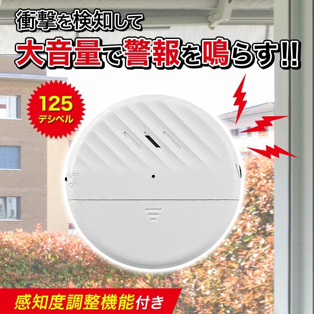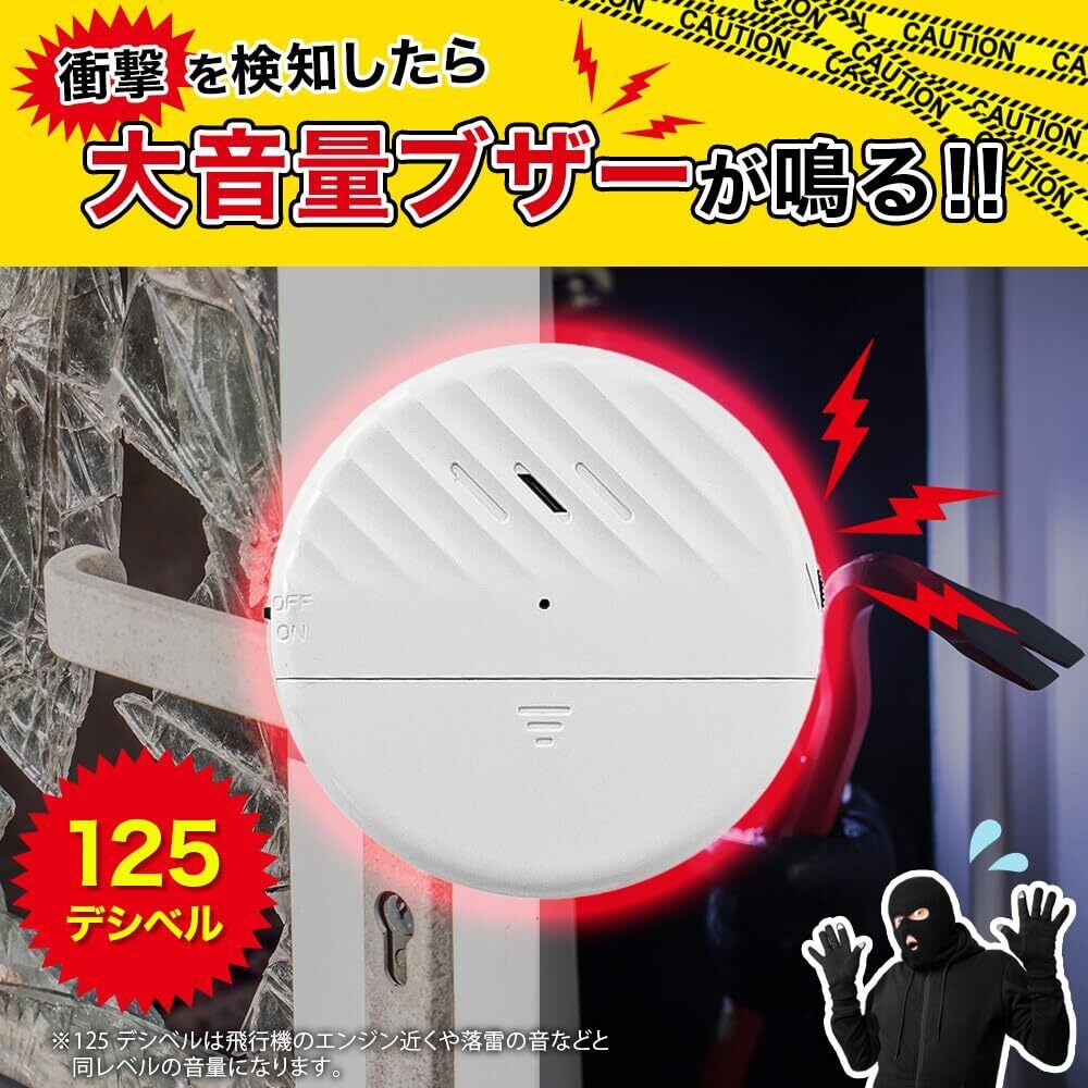 振動検知機能:窓やドアの振動を検知すると、125dBの大音量で警報を鳴らします。