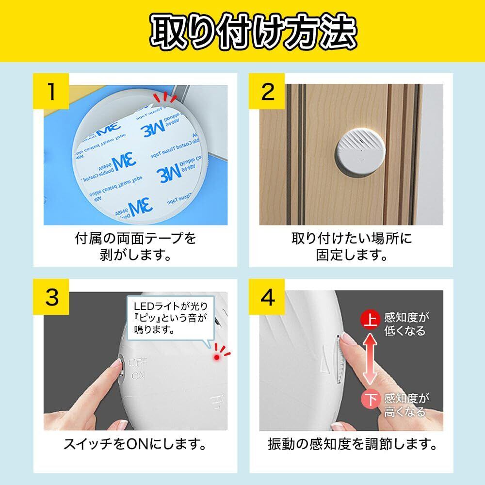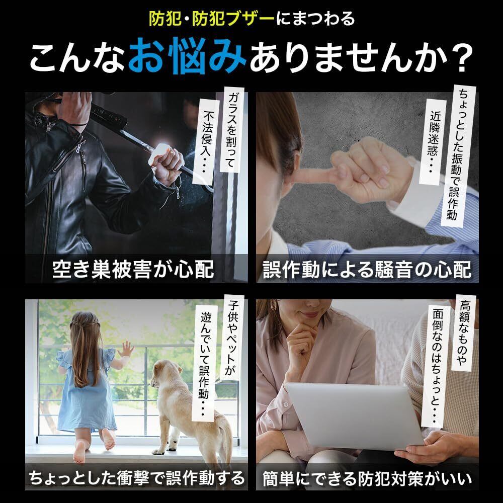 防犯ブザー 窓 大音量 振動 衝撃 防犯アラーム 窓ガラス ドア 家防犯 感知度調整 自動停止 工事不要 簡単設置 防犯 (ホワイト2個)