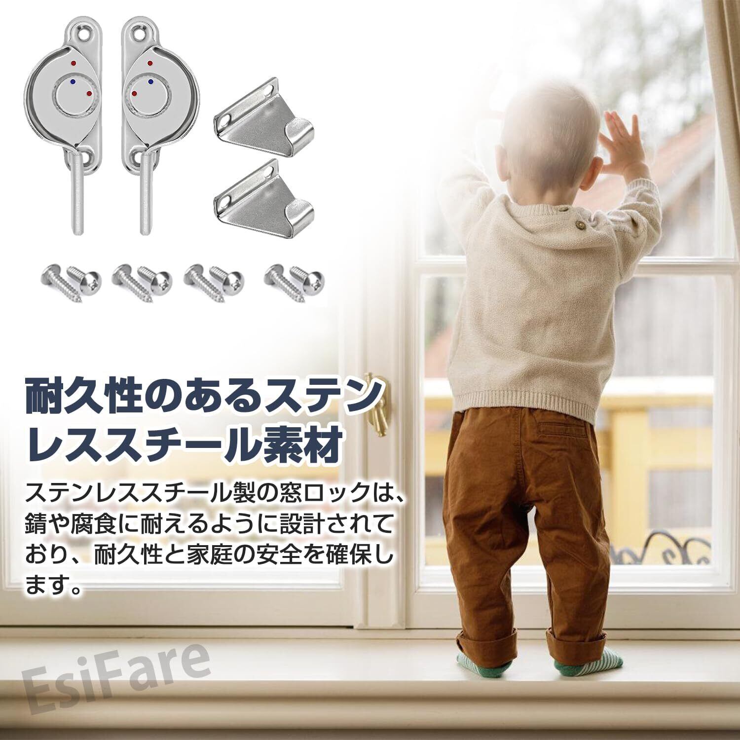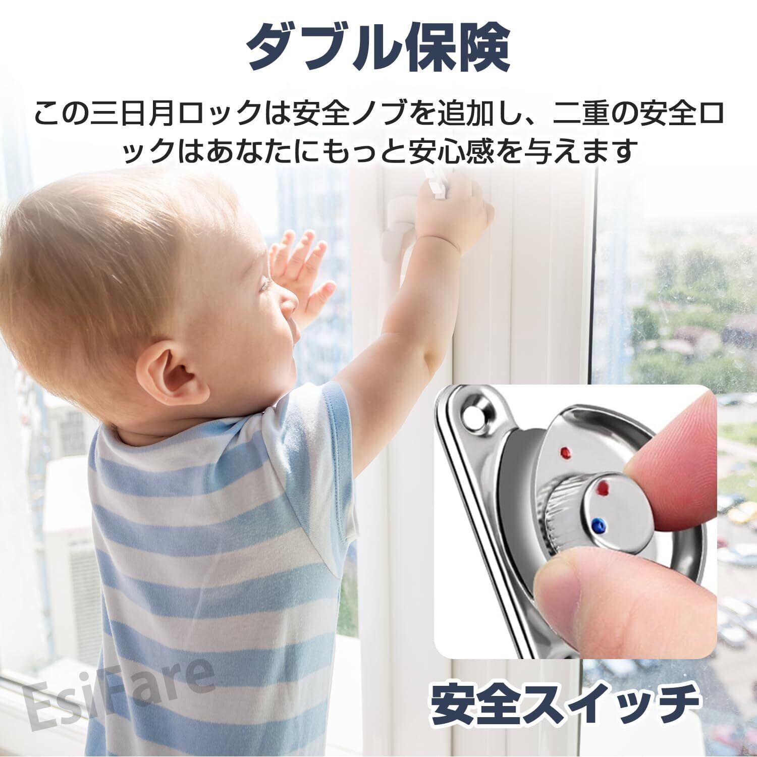 【二重の安全性】この万能クレセントは二重の安全設計になっており、ハンドルだけでなく、外部からもロックすることができます。 赤い点に赤い点があるとき、それはまた効果的に子供かペットが窓を開けることを防ぐことができるロックされた状態である。