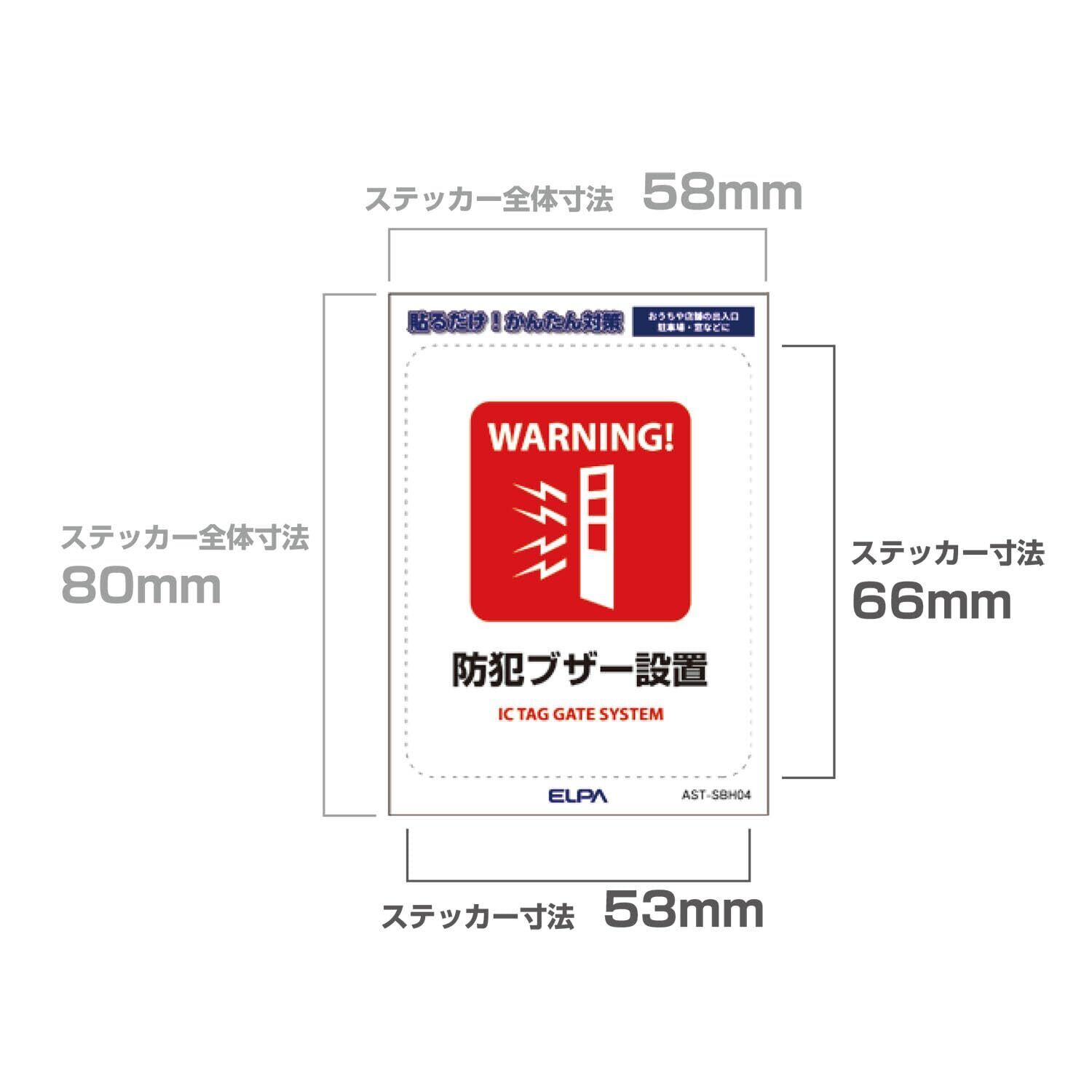 【新春セール】はがしやすいステッカーS 防犯ブザー設置 W53xH66mm AST-SBH04