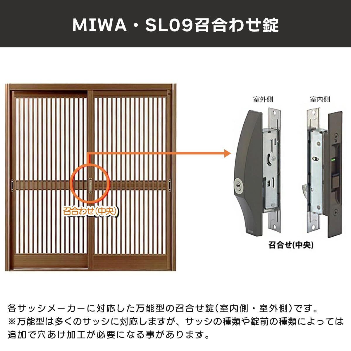 MIWA( 美和ロック )の万能型引違戸錠です。SL09-1LSは引き戸(引き違い戸)タイプの玄関ドアの真ん中の鍵です。