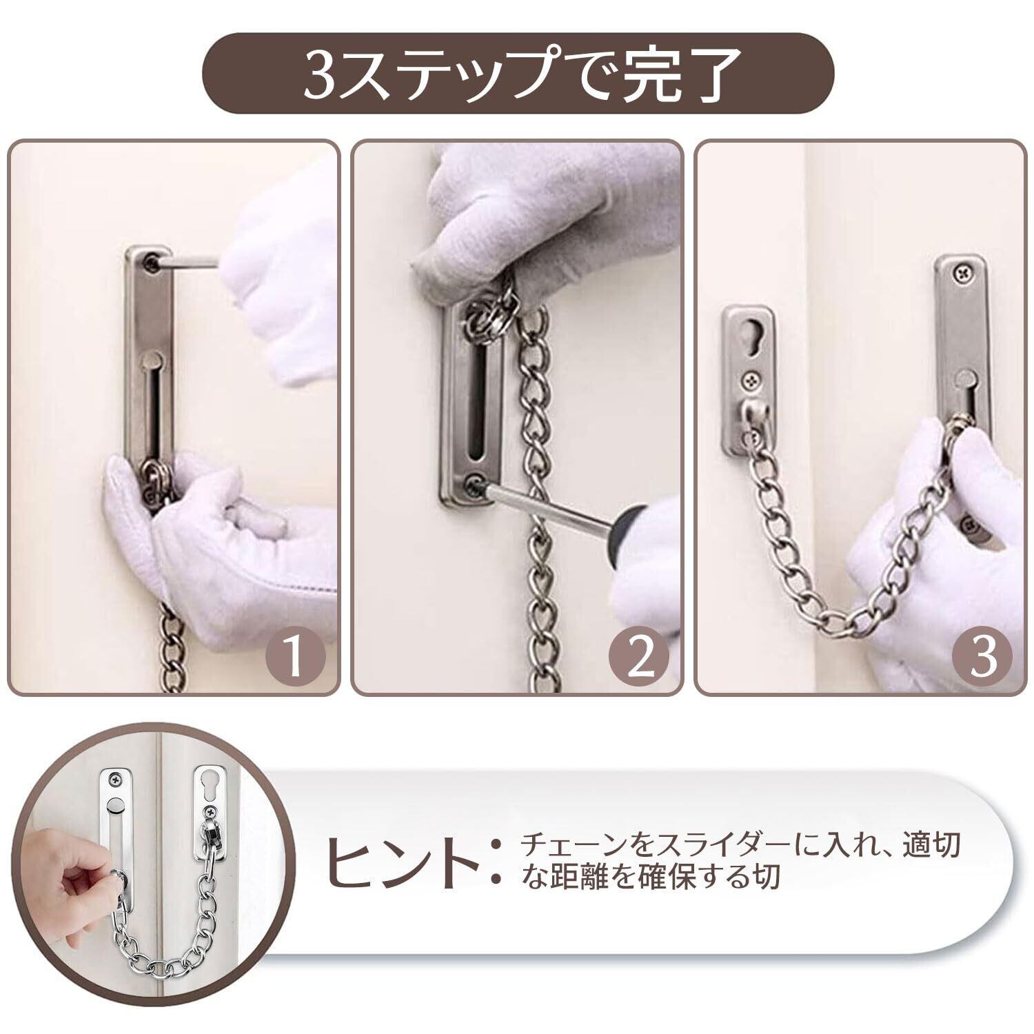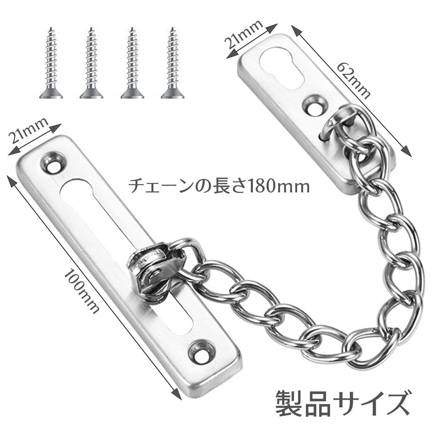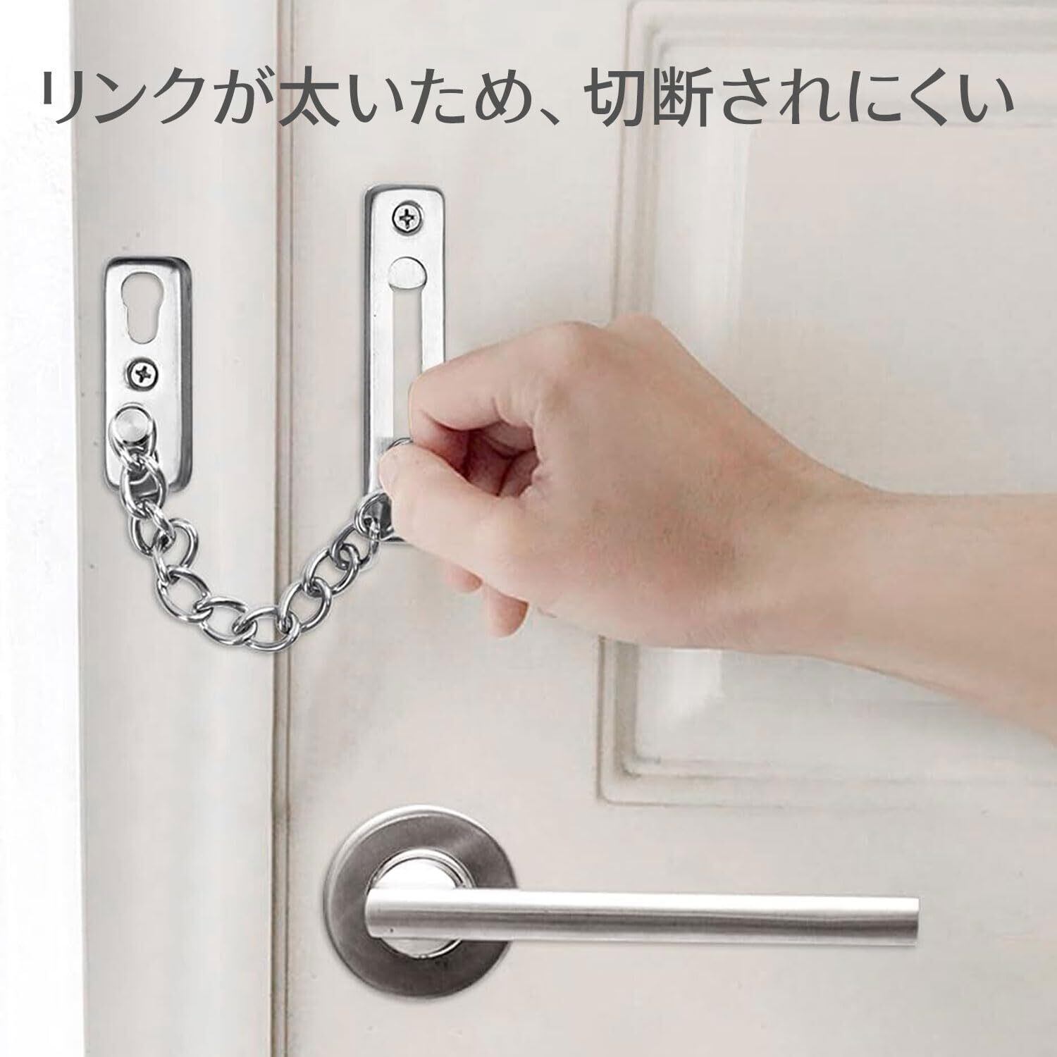 【上品な材質】ドアチェーンは、腐食、摩耗、高温に強い高強度ステンレスで作られており、錆びにくく、丈夫で、あらゆる過酷な環境に耐えるます、チェーンの部分は太くしたことで、切りにくく、防犯レベルを有効的にアップさせます。