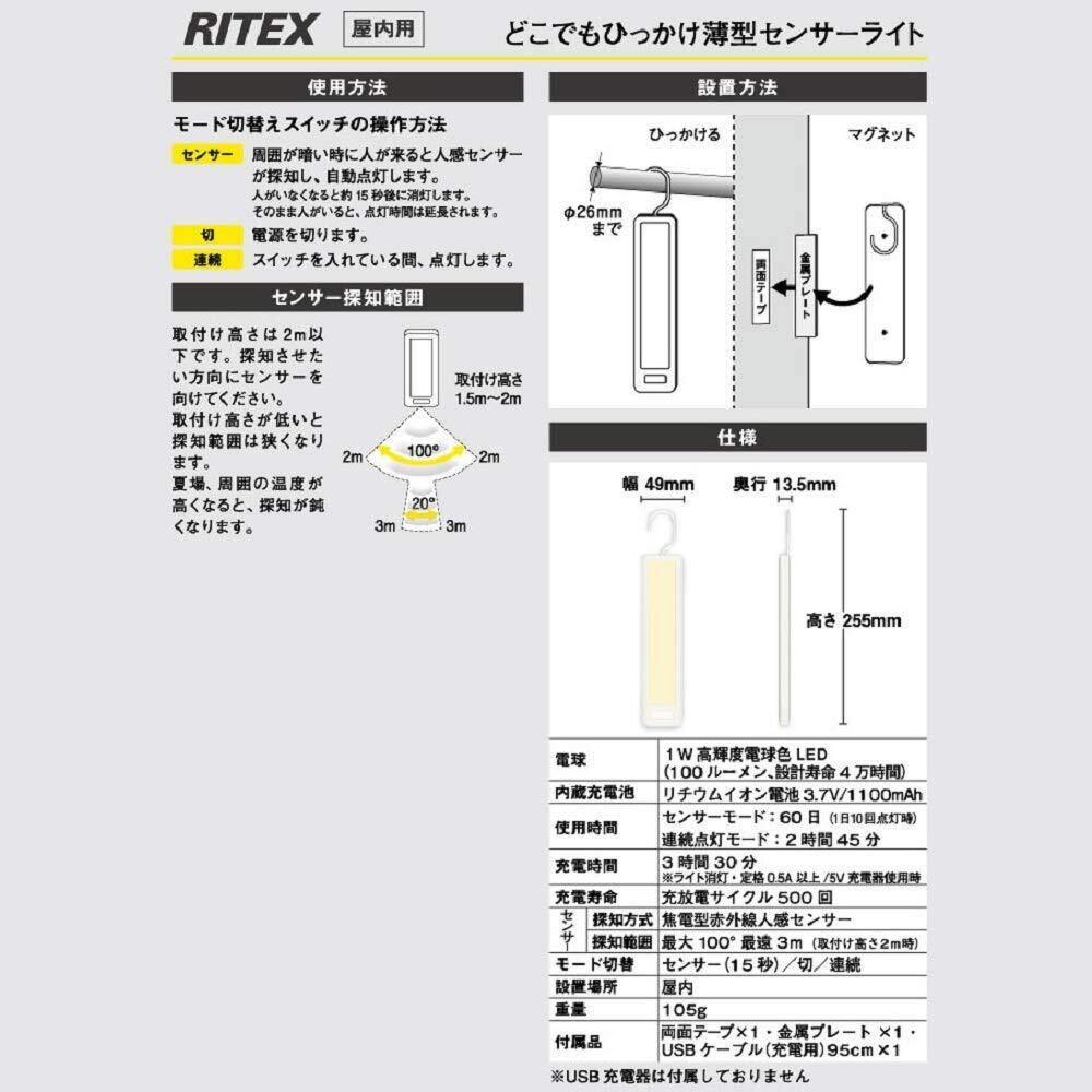 ムサシ(MUSASHI) センサーライト 屋内用 薄型センサーライト フック マグネット 簡単設置 どこでもひっかけ 玄関 クローゼット RITEX ASC-800