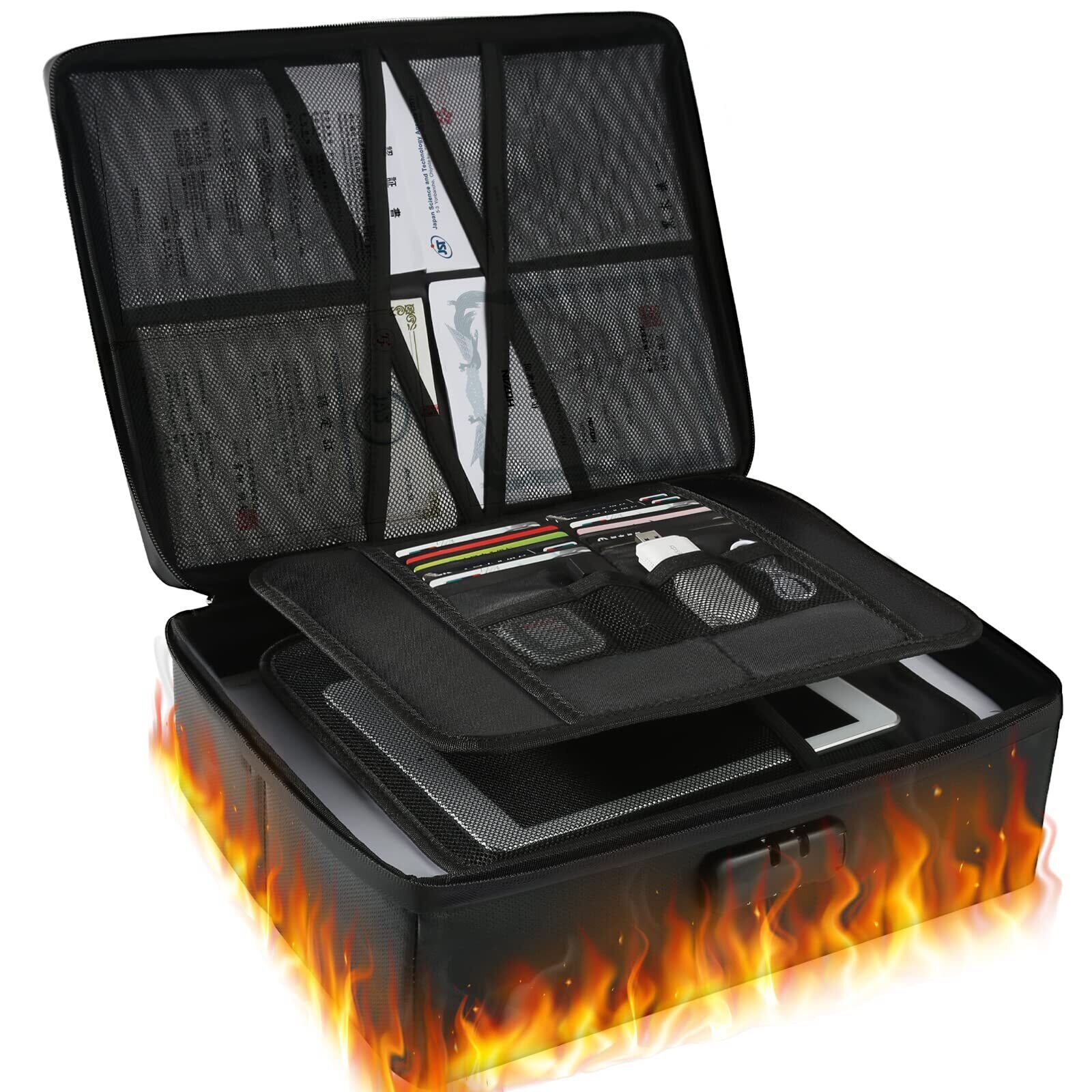 【新着商品】耐火バッグ 家庭用 耐火 耐水 【型崩れしない & ダイヤル式】鍵付き 耐火ケース 防爆 防災 大容量 重要書類 保管 貴重品ボックス 手提げ 防災バッグ 家庭用 オフィス用 耐火収納ケース