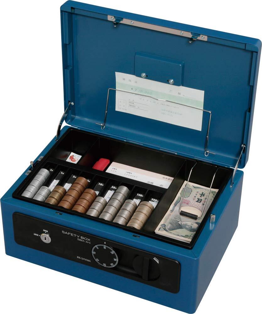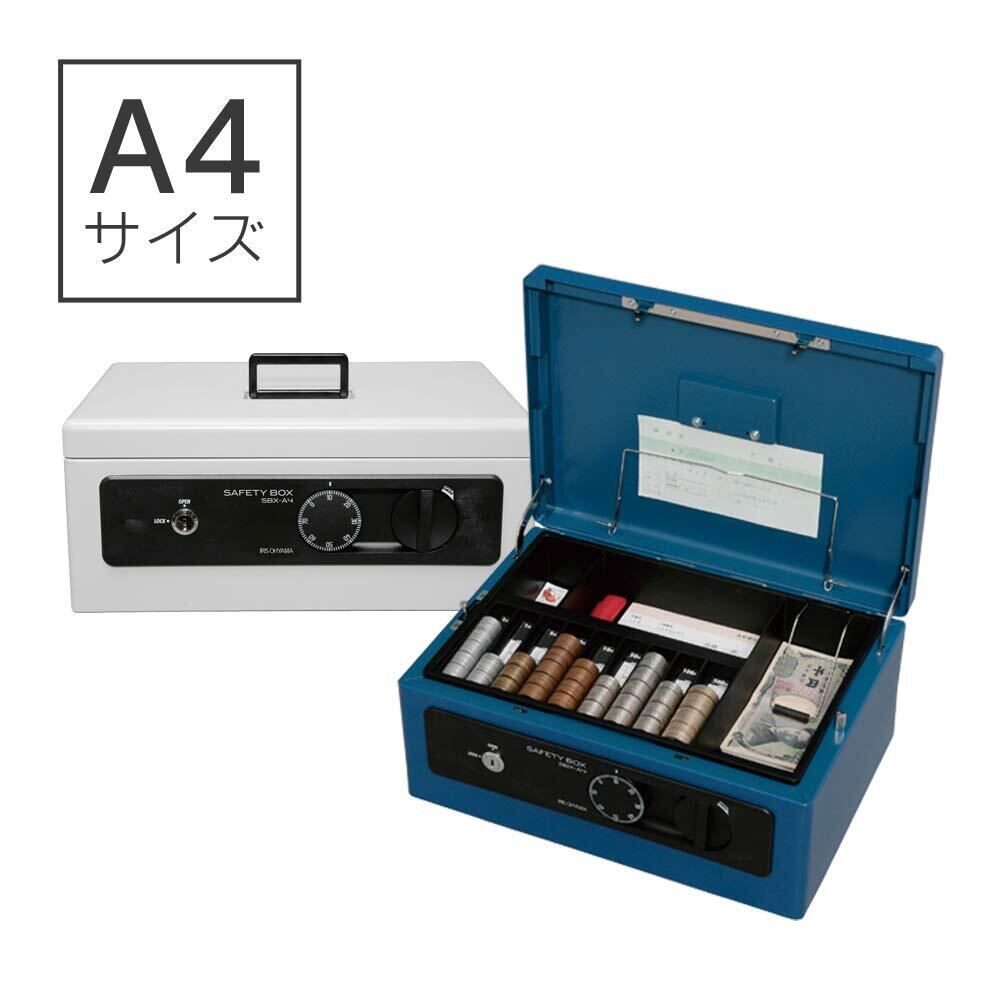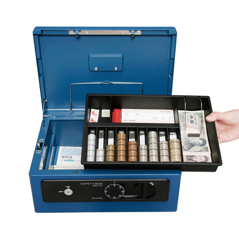 【新着商品】アイリスオーヤマ 金庫 手提げ金庫 ダイヤル式 ダブルロック 防犯ブザー付 A4 SBX-A4 ブルー