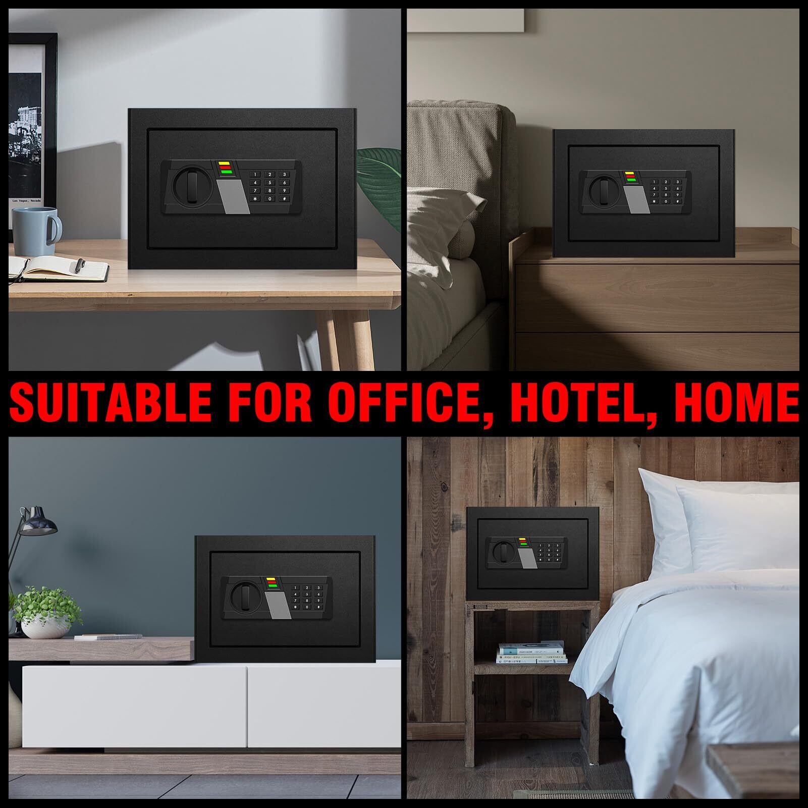安全防火:高度な耐火性素材を採用し、極端な温度で書類や貴重品を保護します。