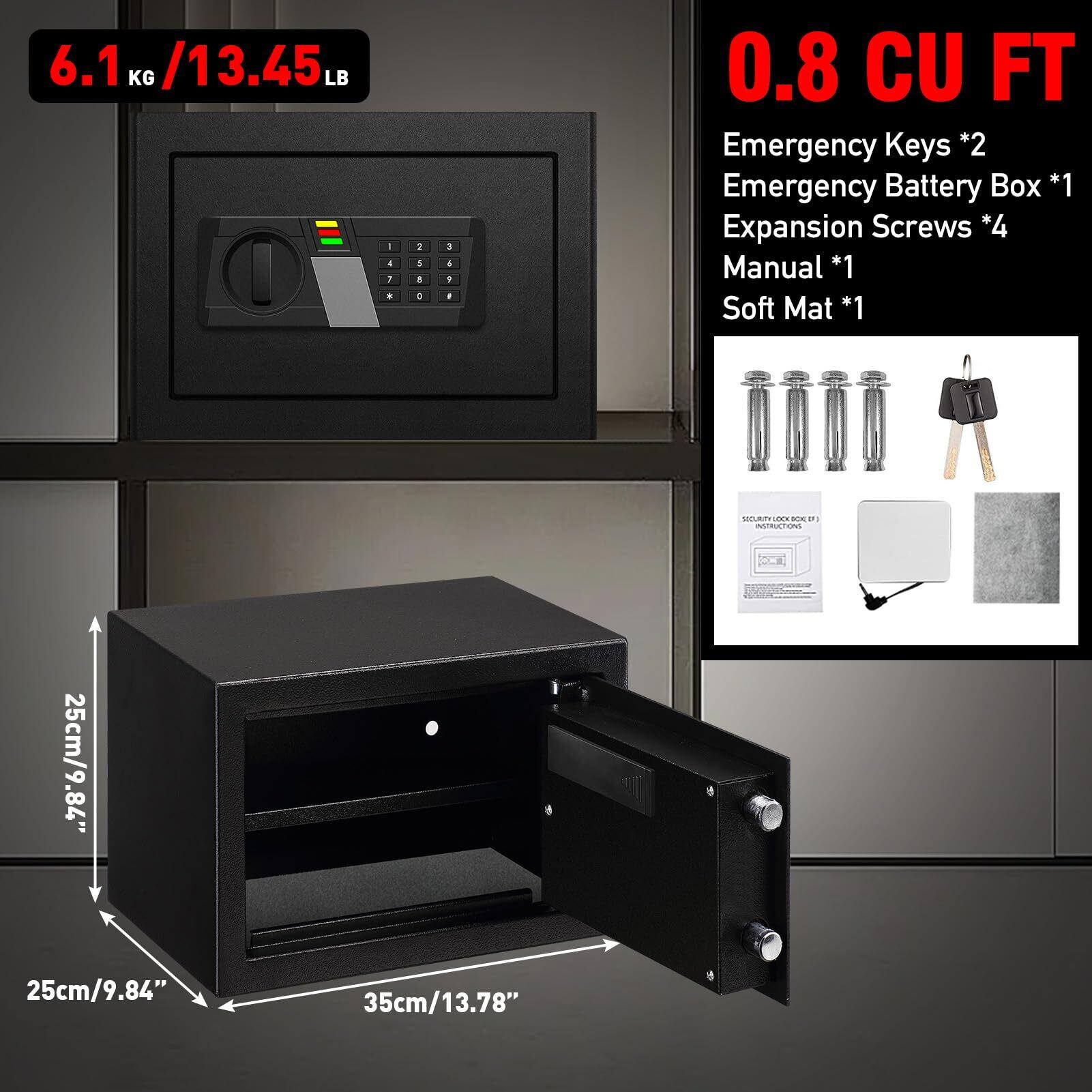 金庫小型 家庭用 25L テンキー式 電子金庫 耐火書類バッグ付属 現金/宝石/貴重品 警報アラーム付き 壁に固定可能 仕切り板付き 25 x 25 x 35cm