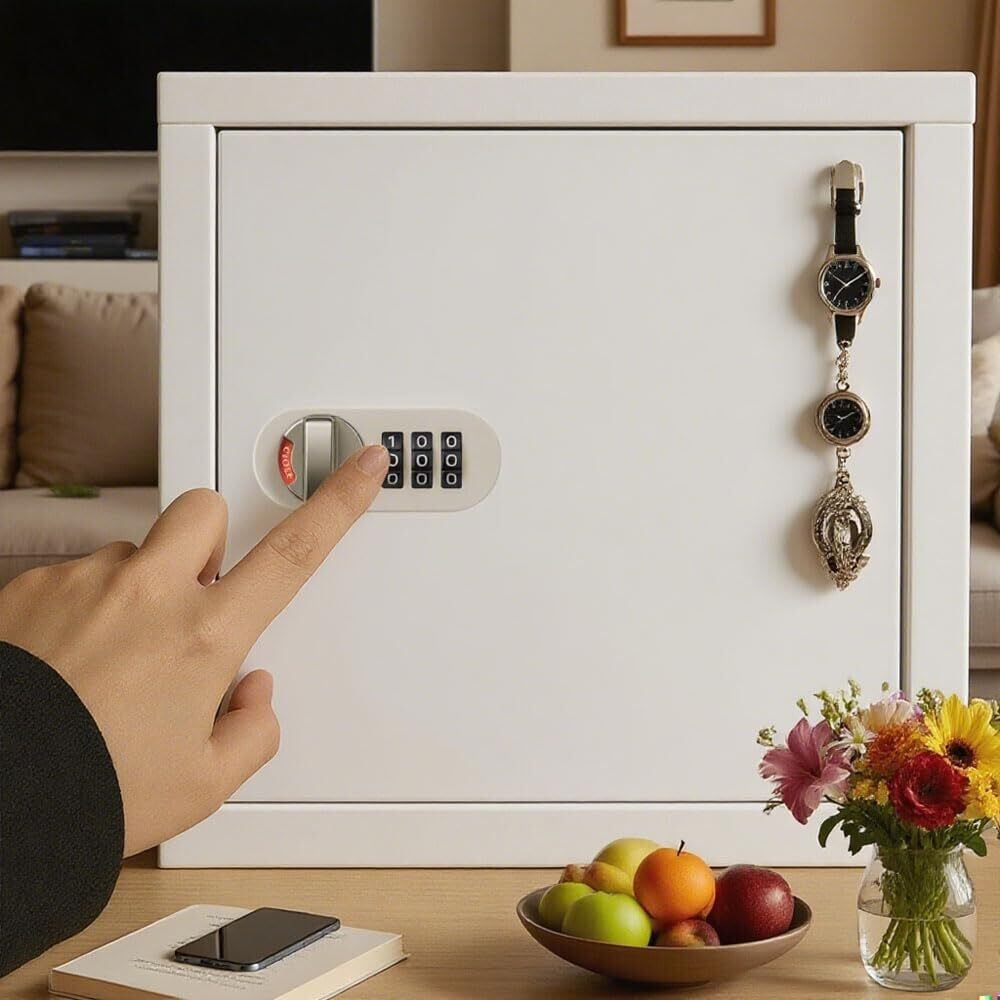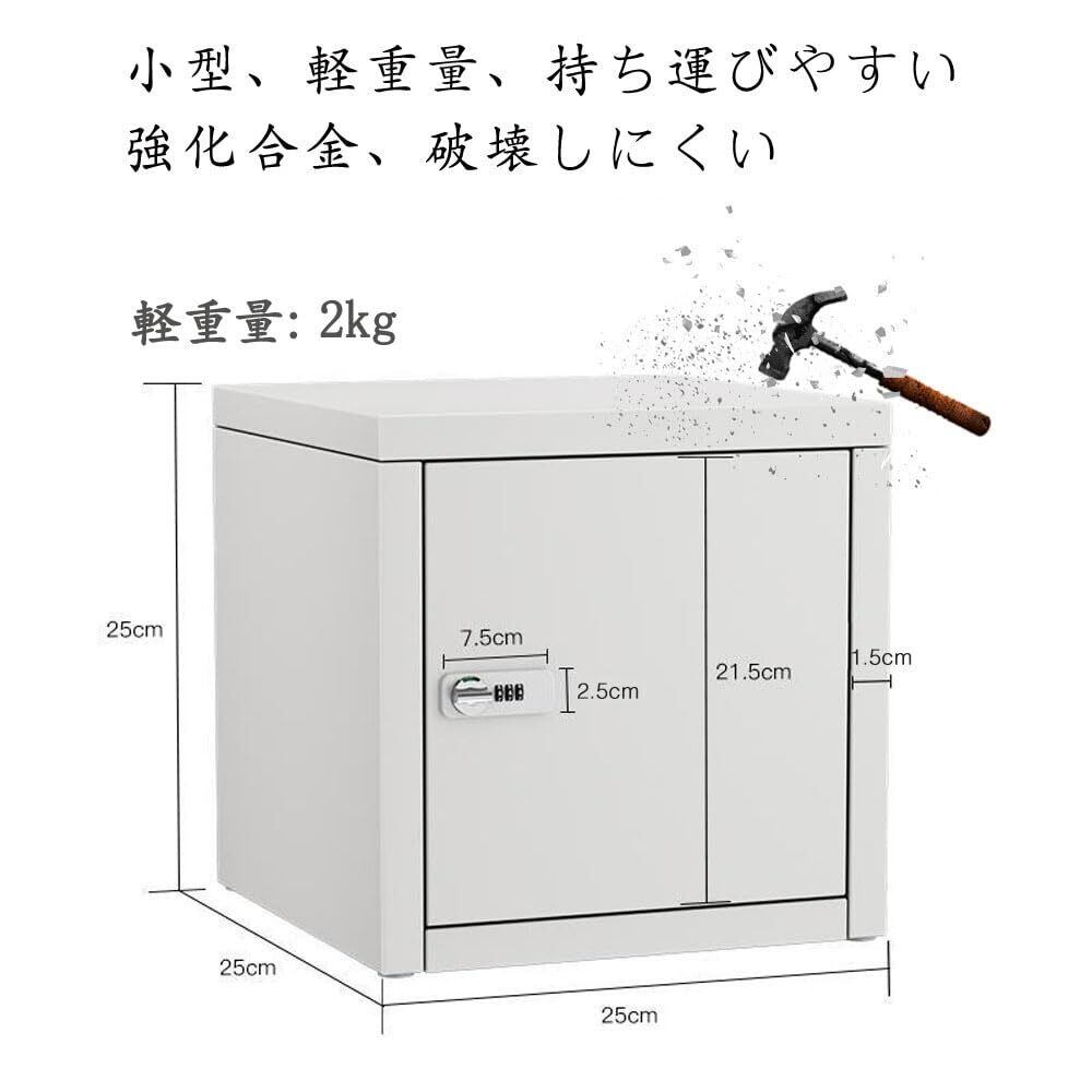 【2022最新】金庫 小型 軽重量 家庭用金庫 収納ボックス 三桁暗証番号 強化合金製 盗難防止 コンパクト 大容量 可愛い 貴重品収納 オフィス 出張 家庭用 会社用 滑り止めテープ付随 工事不要 使用簡単 (ホワイト)