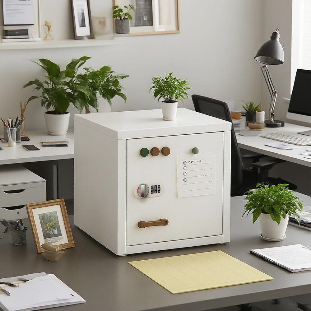 金庫 小型 軽重量 家庭用金庫 収納ボックス 三桁暗証番号 強化合金製 盗難防止 コンパクト 大容量 可愛い 貴重品収納 オフィス 出張 家庭用 会社用 滑り止めテープ付随 工事不要 使用簡単 (ホワイト)
