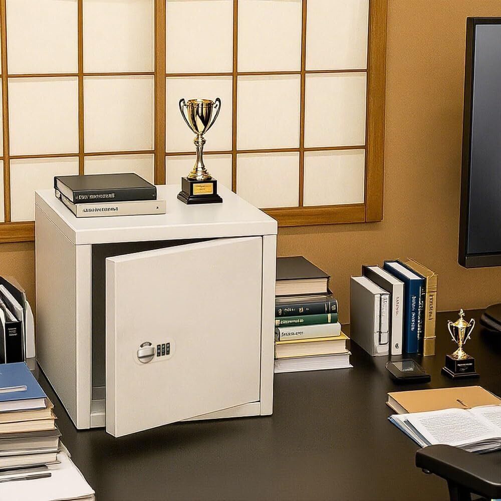 【小型・軽量】外寸は25X25X25cmで、重量は僅か2kgです。リビングの片隅、オフィスのデスク、会社の会議室など、工事不要で簡単設置。持ち運びもラクなので、移動時の貴重品保管にもぴったりです。