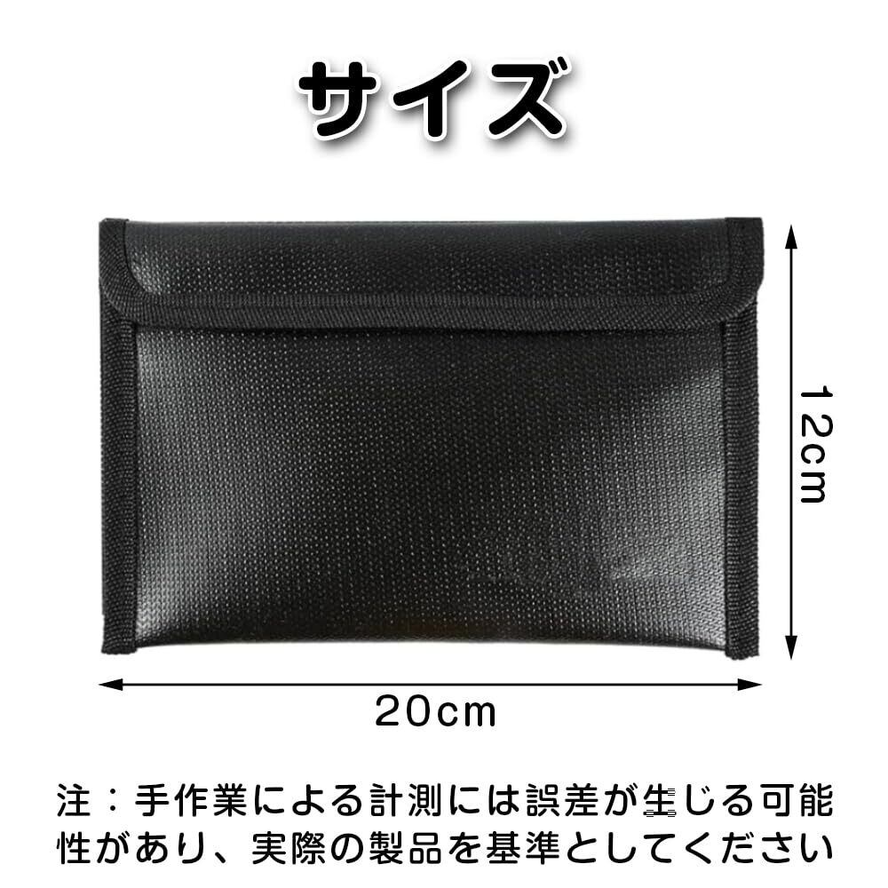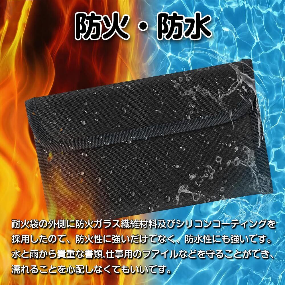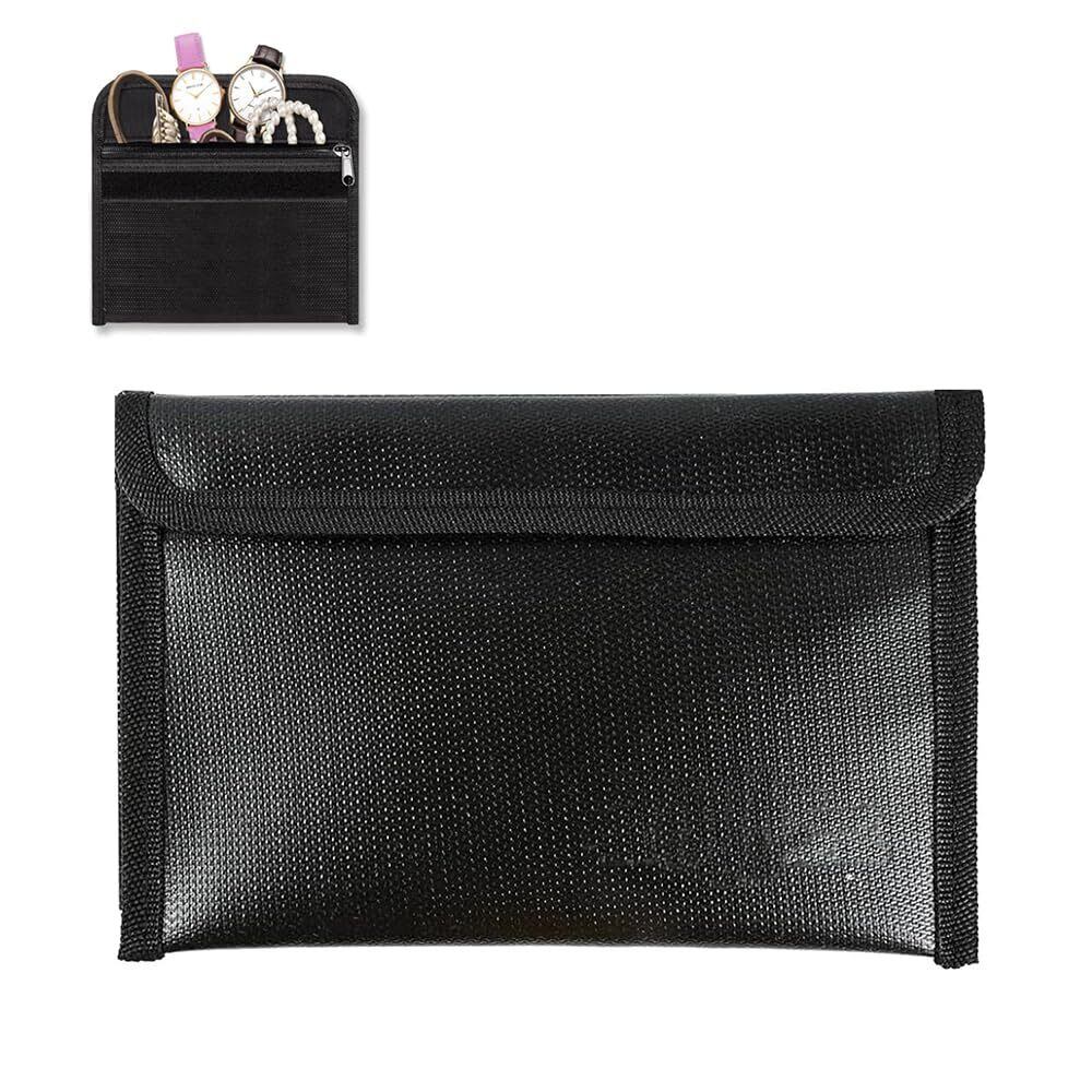 耐火 20*12cm 防水ファイル 書類保管ケース セーフティー 貴重品安心保管袋 防水 防火 防災 収納可能 (ブラック)