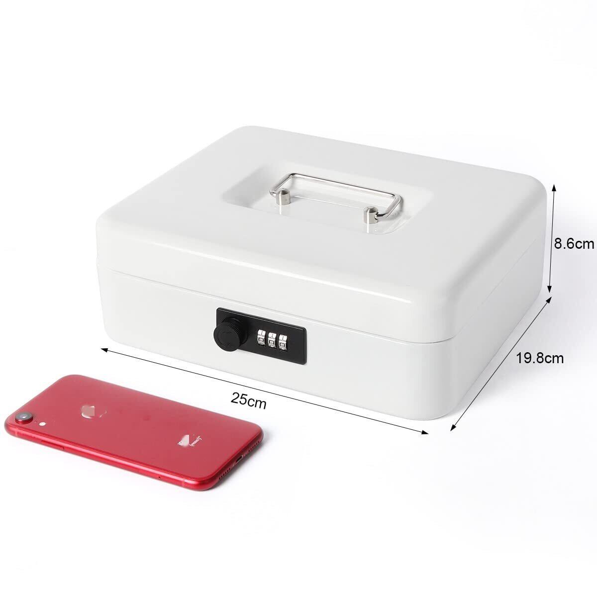 【特価セール】金庫 ミニ金庫 手提金庫 ダイヤル式 金属製 ホワイト 25x20x8.8cm (ホワイト, M)